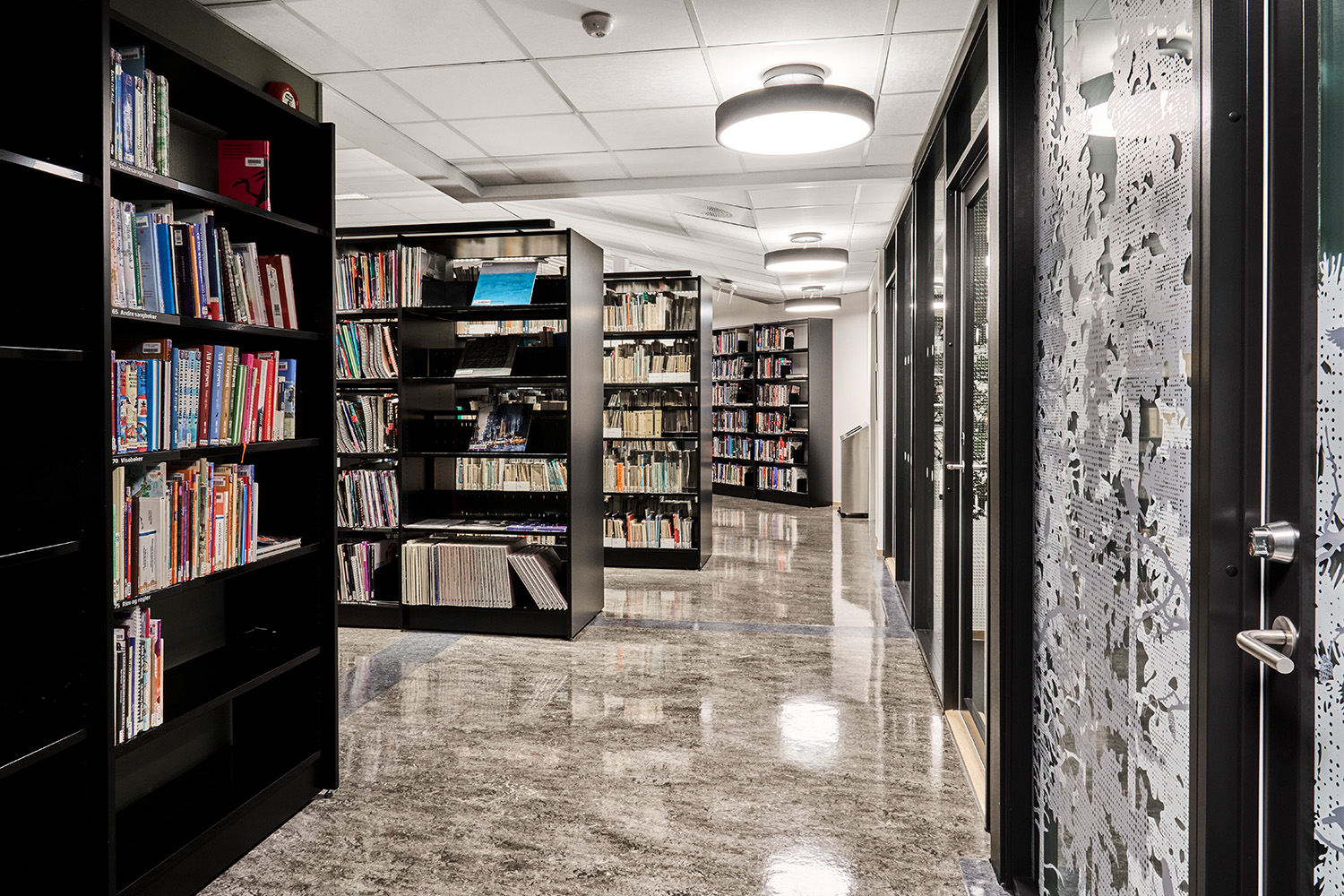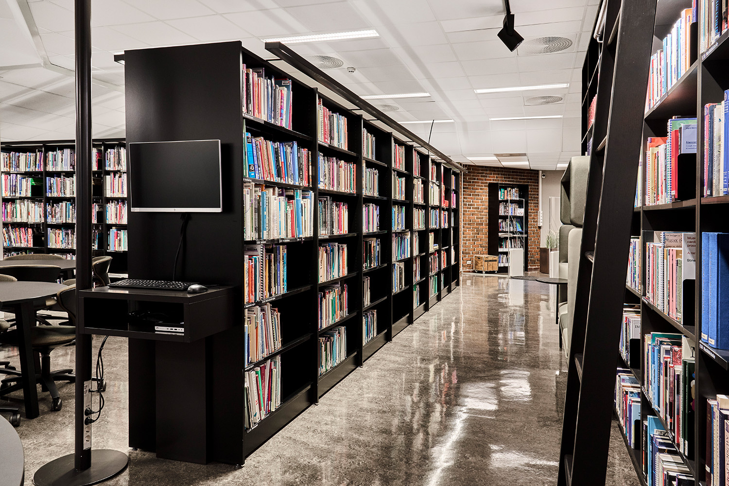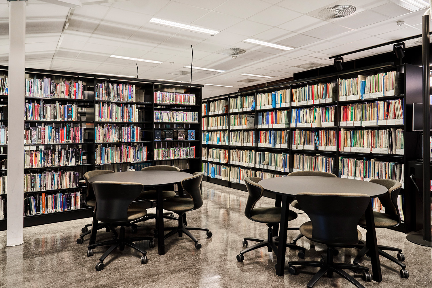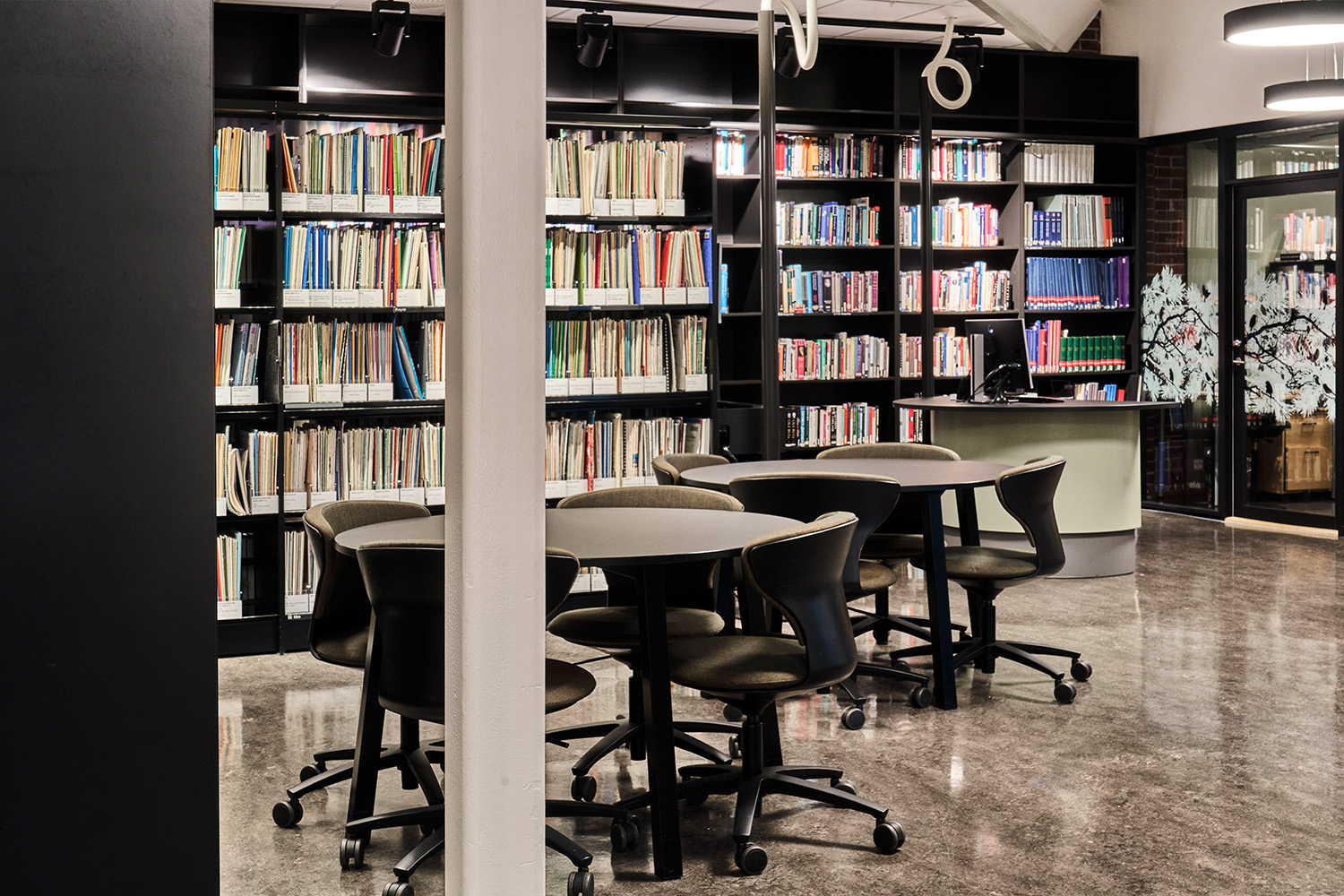 Na maandenlange renovatiewerken kon de bibliotheek in november 2020 de studenten opnieuw verwelkomen. Vandaag laat deze moderne en ruime leeromgeving een actieve invulling toe, met de nodige flexibiliteit. Er ging extra aandacht uit naar zones voor sociaal contact en groepswerk, terwijl ook speciale ruimten werden ingericht. BS Eurobib Noorwegen mocht instaan voor de levering van de rekkensystemen, die in 2022 werden aangevuld met bijkomend meubilair en extra rekken met kantelbare displays en opbergruimte voor tijdschriften.