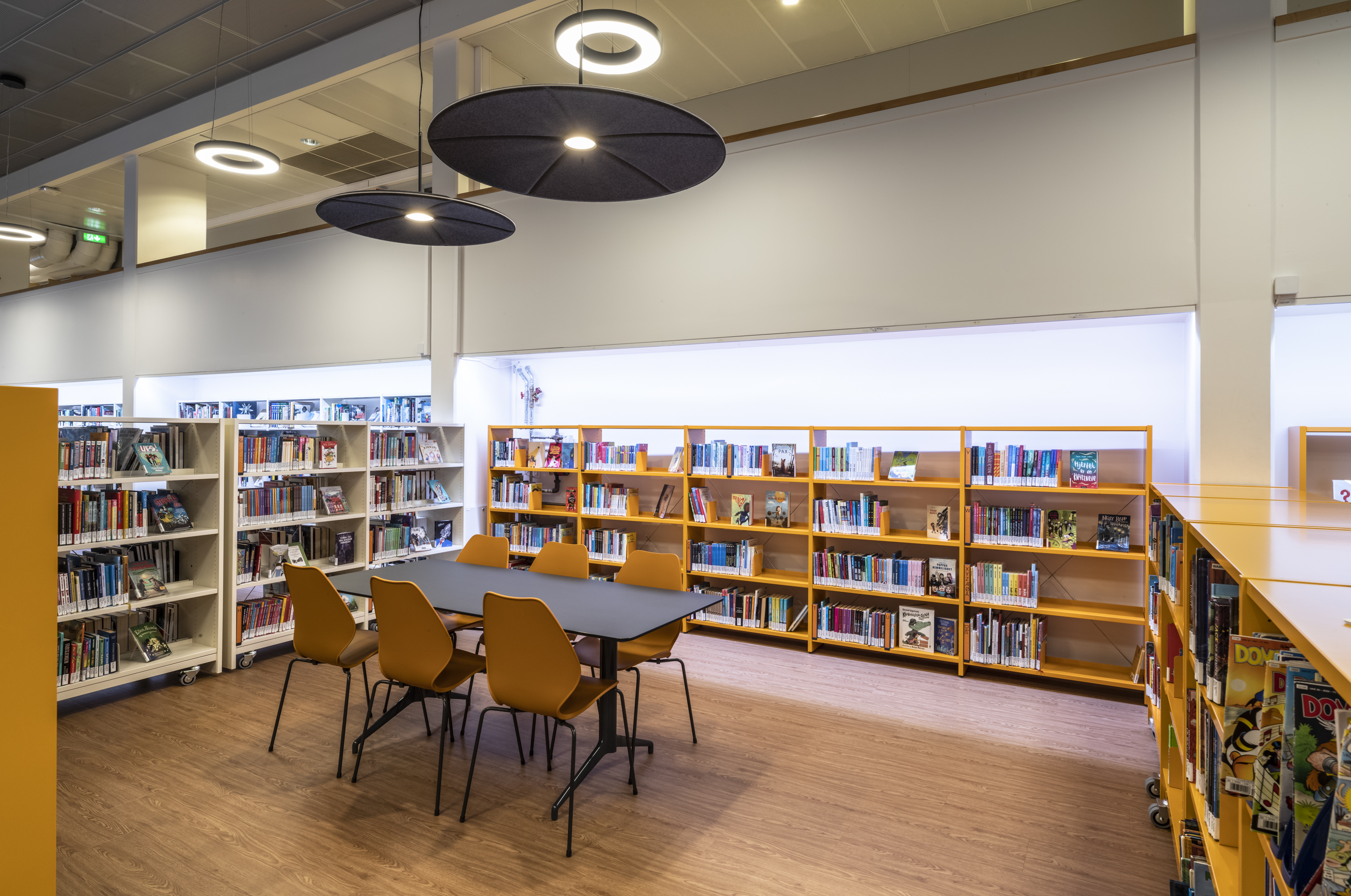 Veelzijdigheid, licht en ruimtegevoel kregen een centrale plaats in de nieuwe lay-out. De tweezijdige rekkensystemen op de vloer zijn voorzien van wieltjes, zodat de ruimte verschillende invullingen kan krijgen. Denk bijvoorbeeld aan events. Rekkensystemen van 152 cm hoog dragen bovendien bij tot een meer open bibliotheekruimte, die overzichtelijker en lichtrijker is.