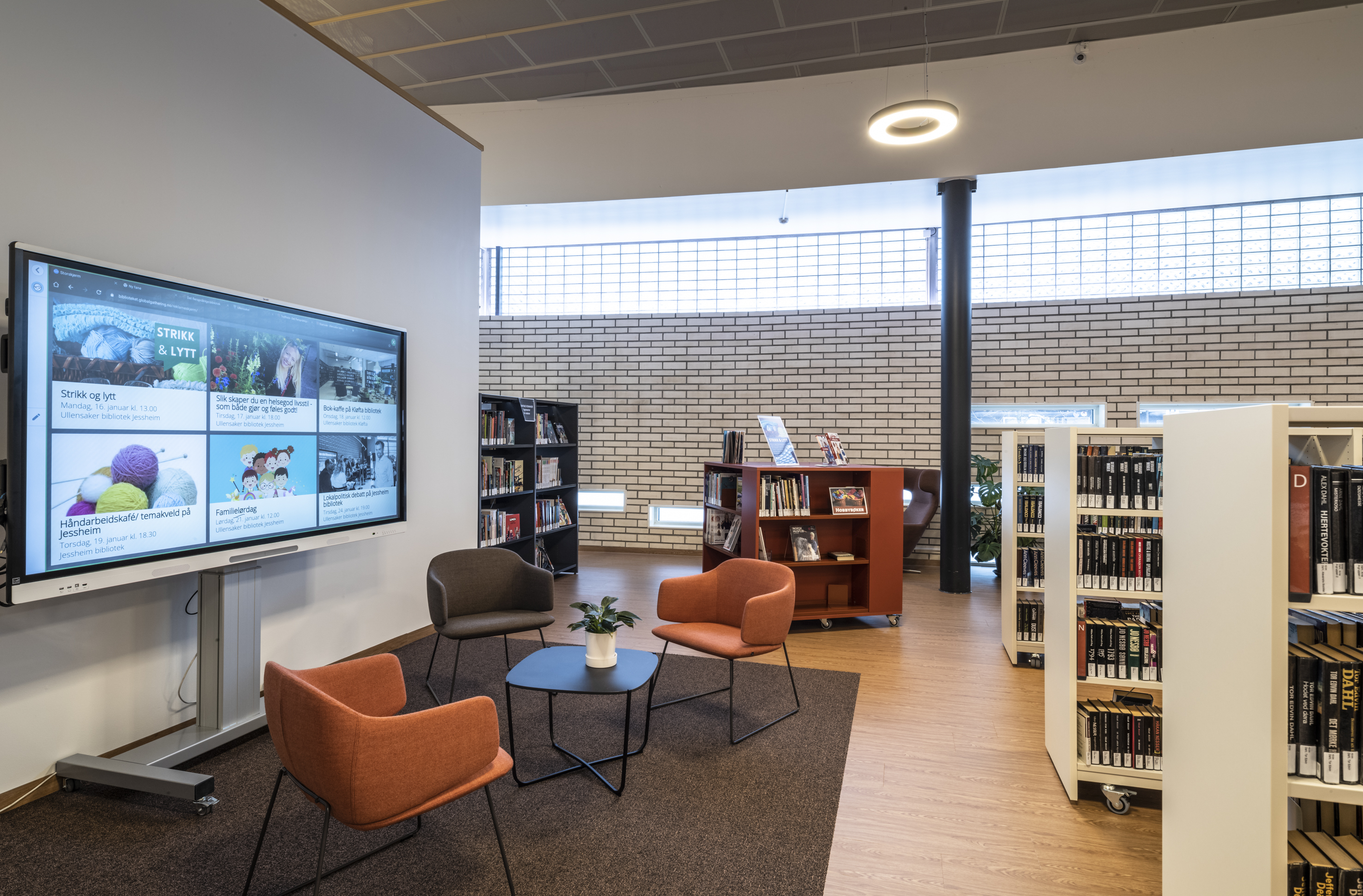 De gemeentelijke bibliotheek van Ullensaker ligt in deelgemeente Jessheim. Op 5 januari 2023 mocht de bibliotheek haar deuren weer opengooien na een grondige renovatie. Al het meubilair werd, net als de rekkensystemen, vernieuwd. Het nieuwe kleurenpalet werd volledig afgestemd op de basiselementen van het gerenoveerde gebouw.