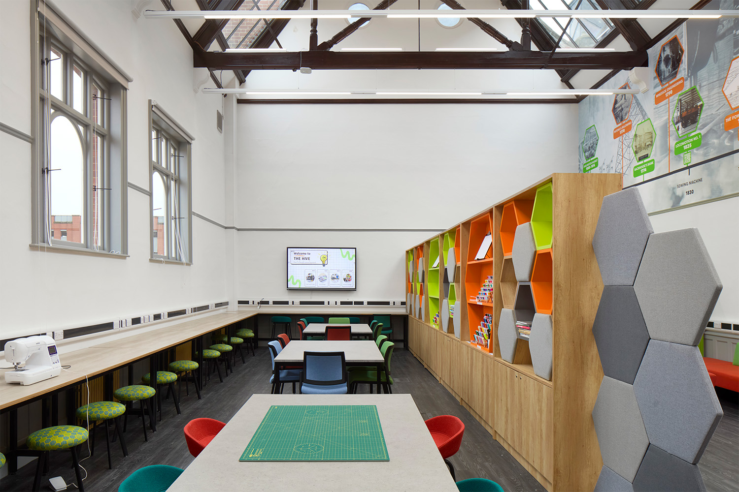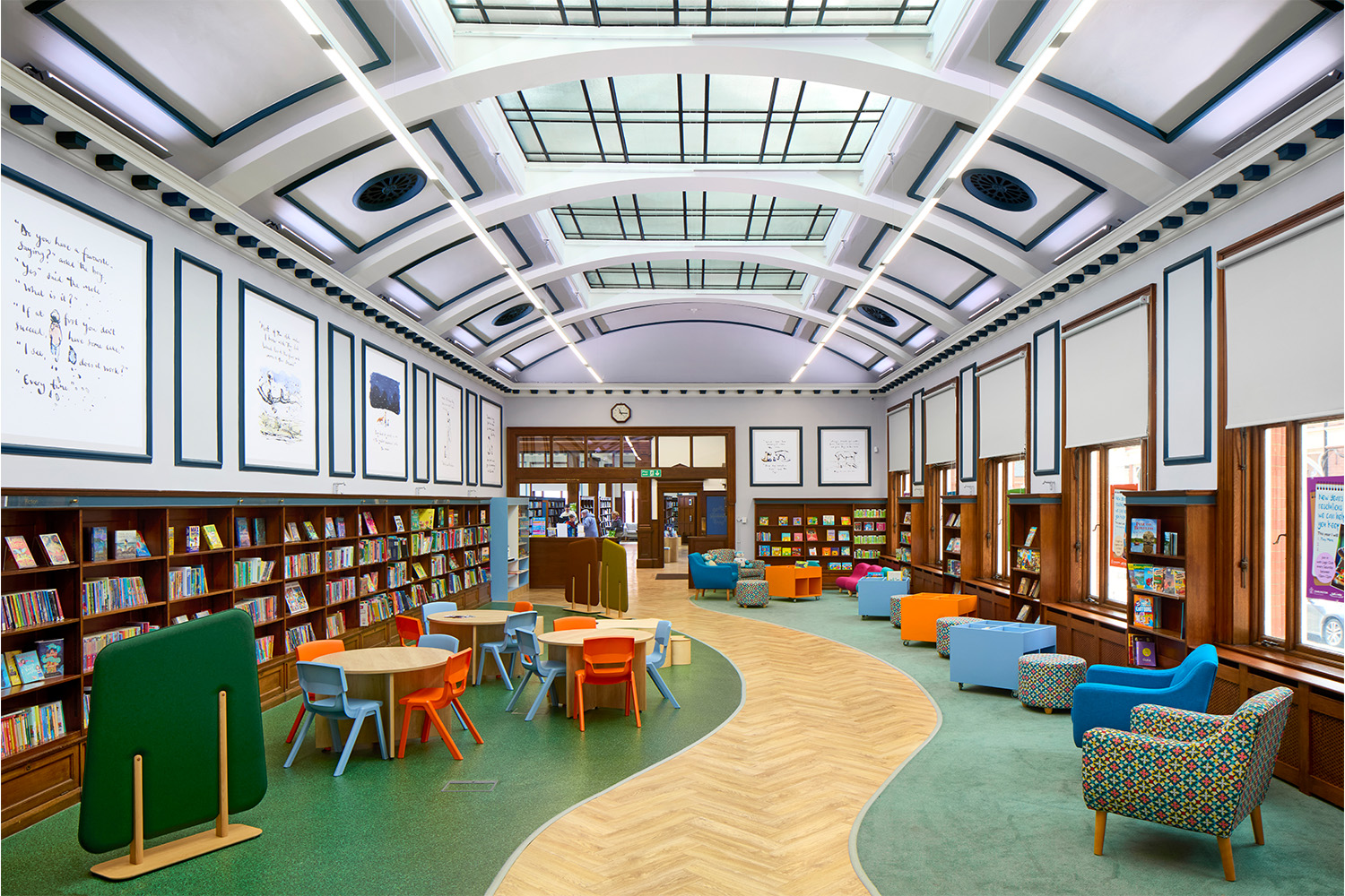 Nu een volledige vleugel van het gebouw in het teken staat van creativiteit, robotica en computerprogrammering en er zelfs faciliteiten zijn voor 3D-printen, spreekt de bibliotheek bovendien een nieuwe groep gebruikers aan. Door de historische elementen te combineren met modern meubilair is de bibliotheek nu een ontmoetingsplek waar mensen samenkomen om nieuwe vaardigheden te leren en technologieën zoals VR-headsets te ontdekken.