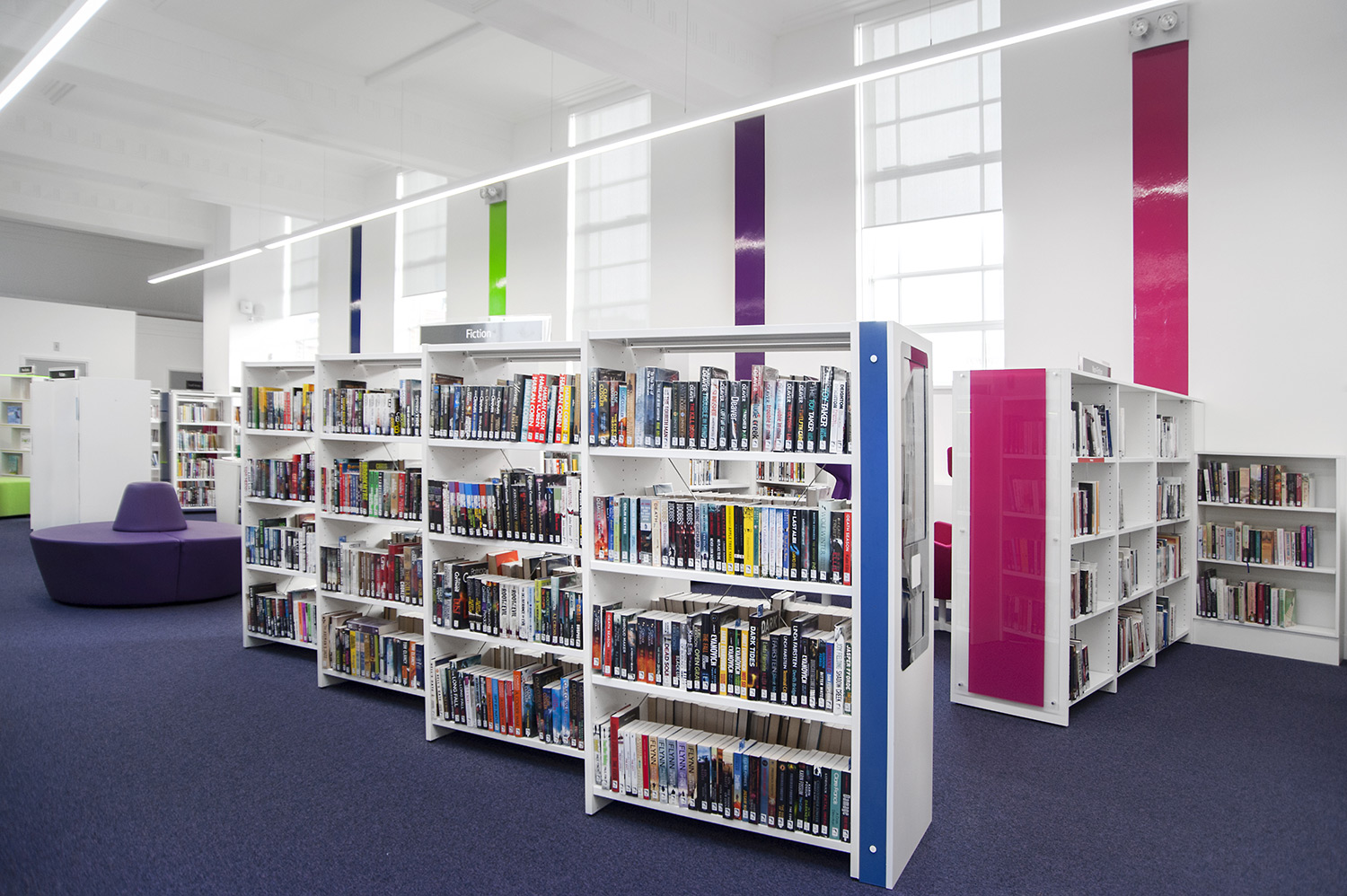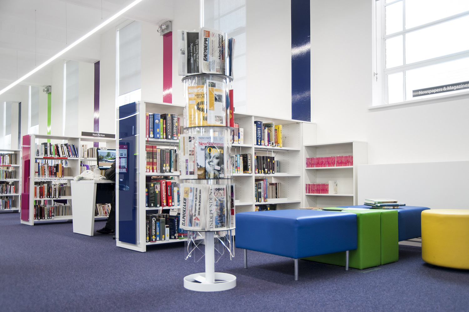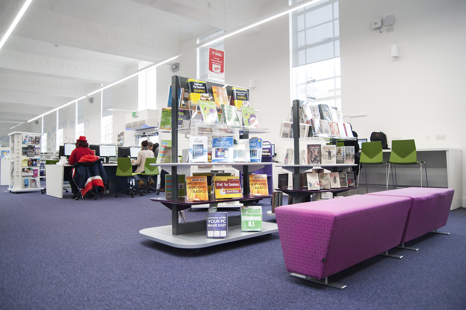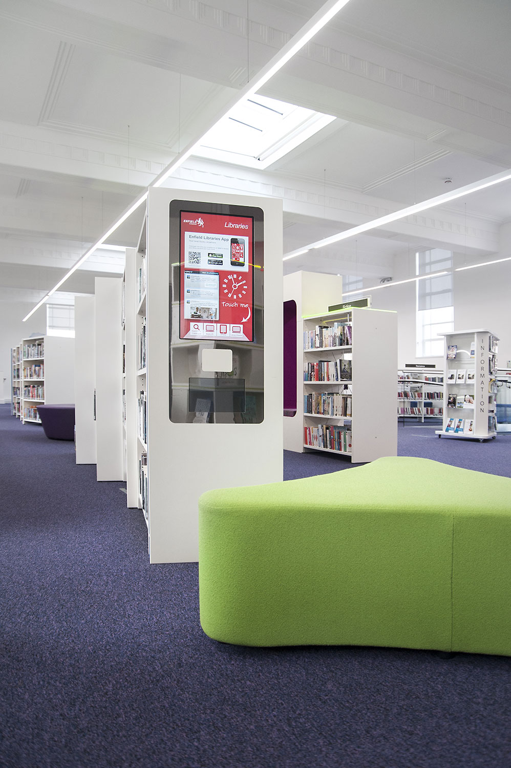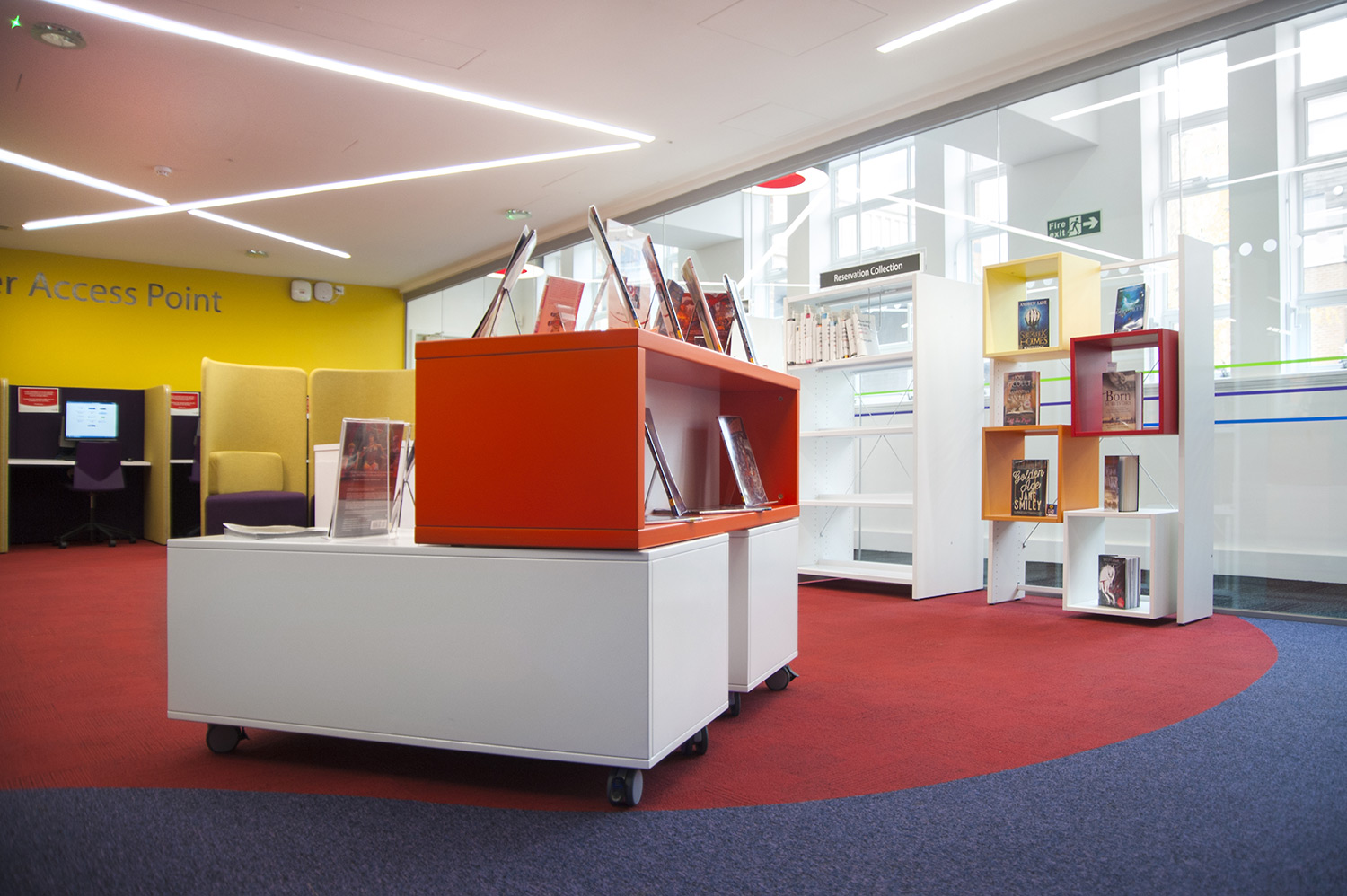 Producten die in de Openbare bibliotheek Palmers Green, London, Verenigd Koninkrijk gebruikt worden