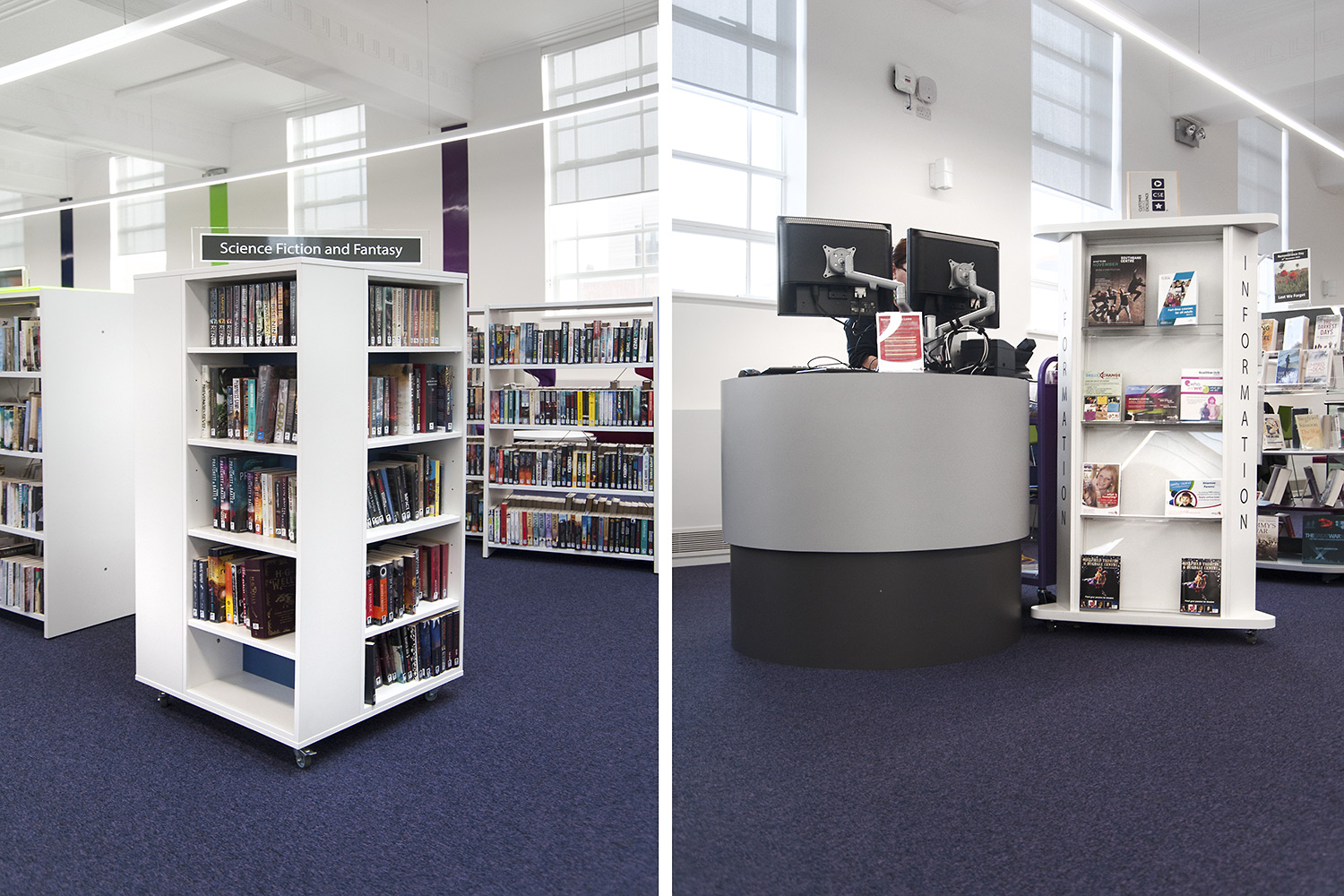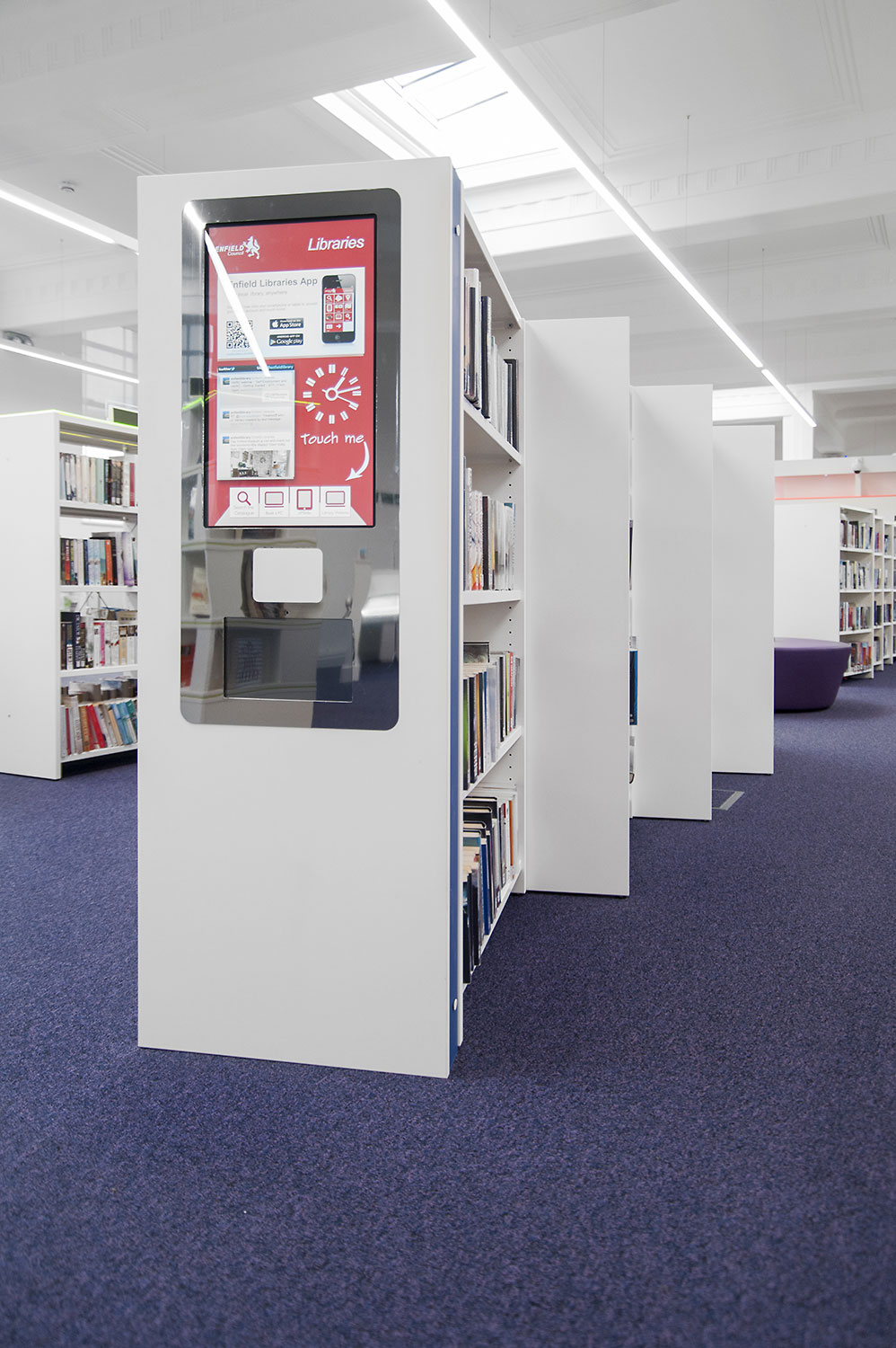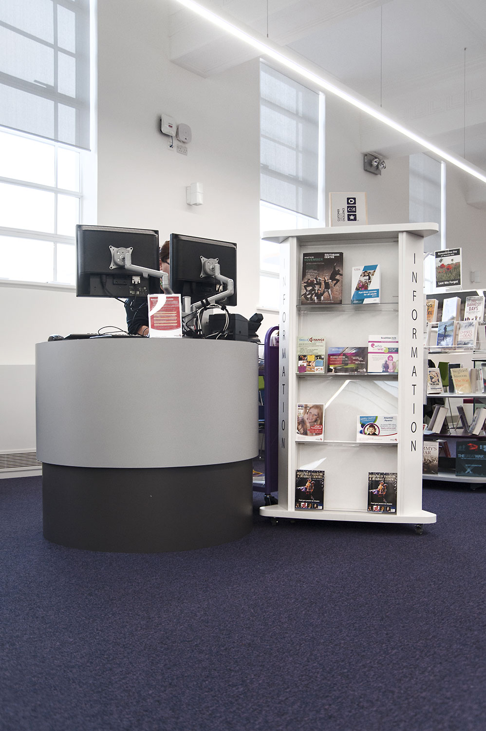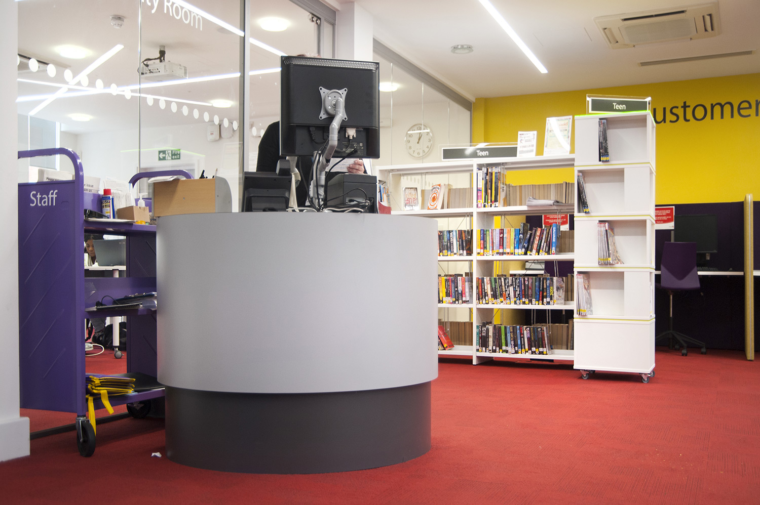 Producten die in de Openbare bibliotheek Palmers Green, London, Verenigd Koninkrijk gebruikt worden