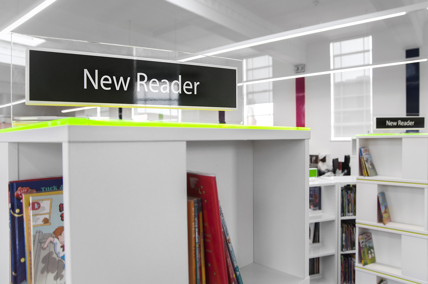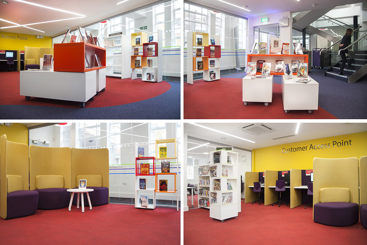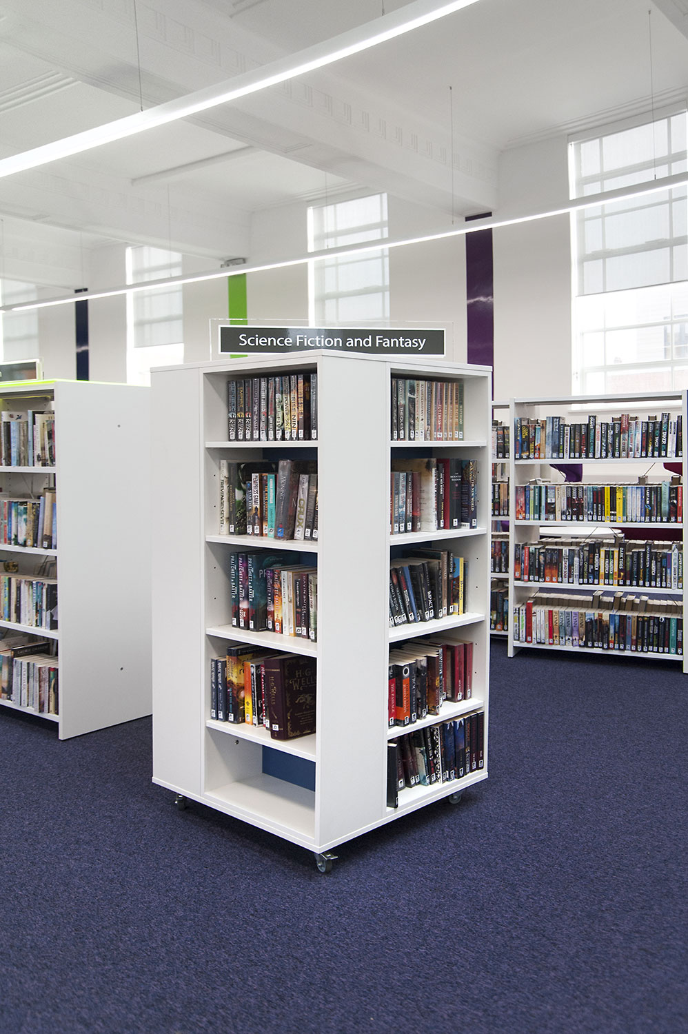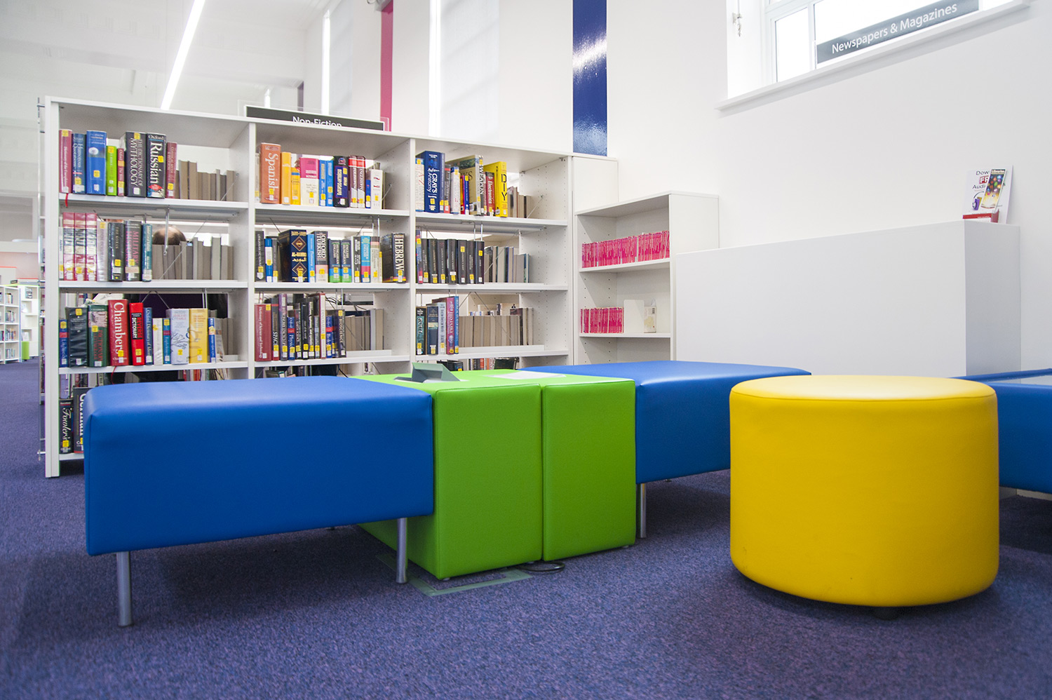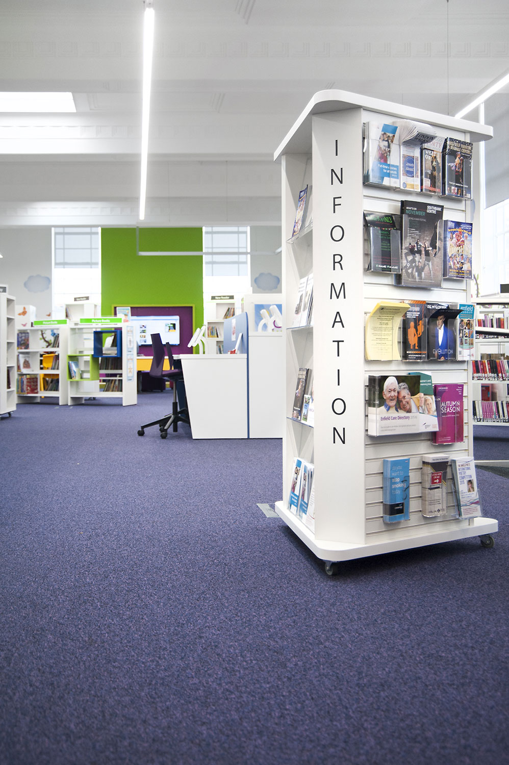 Producten die in de Openbare bibliotheek Palmers Green, London, Verenigd Koninkrijk gebruikt worden