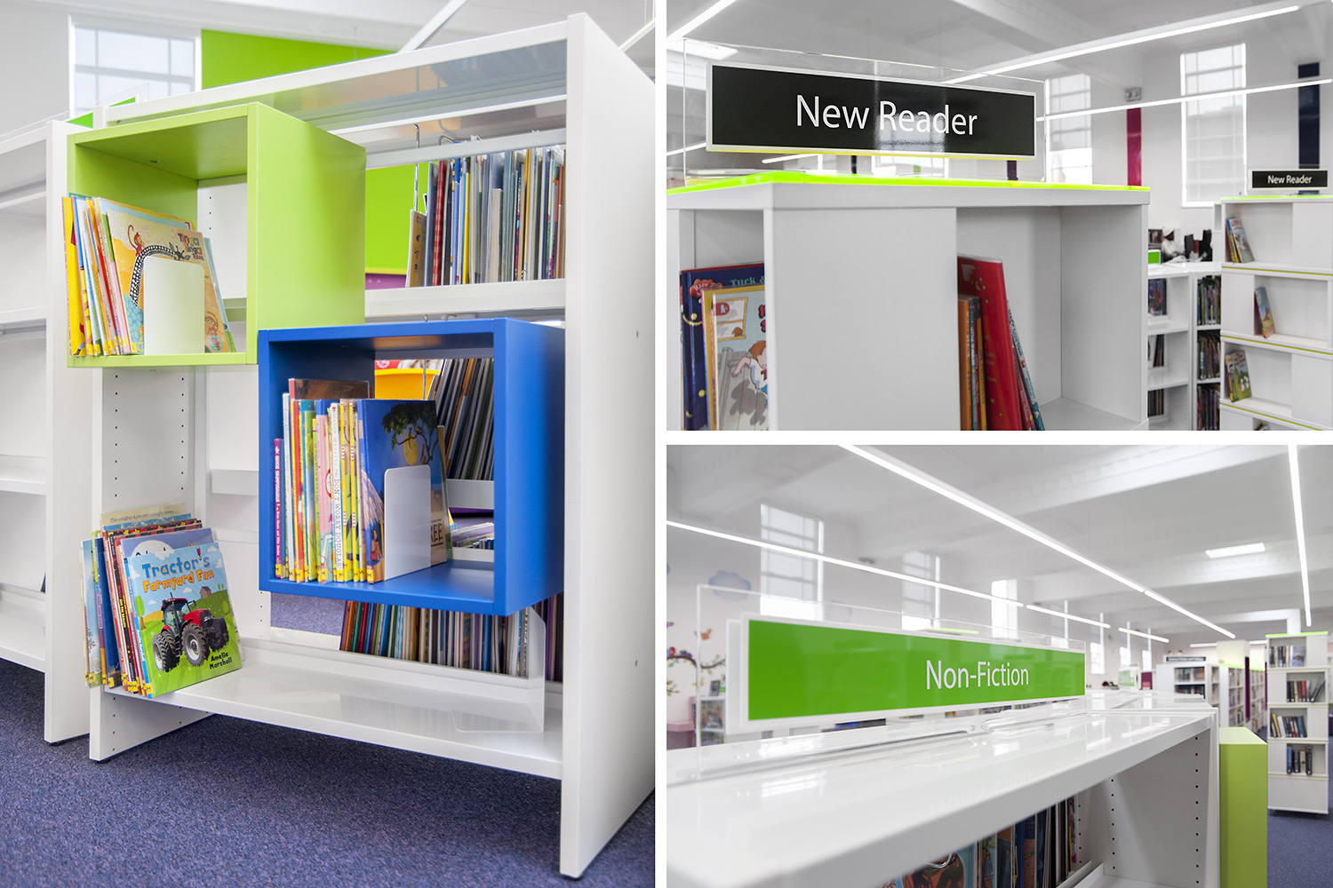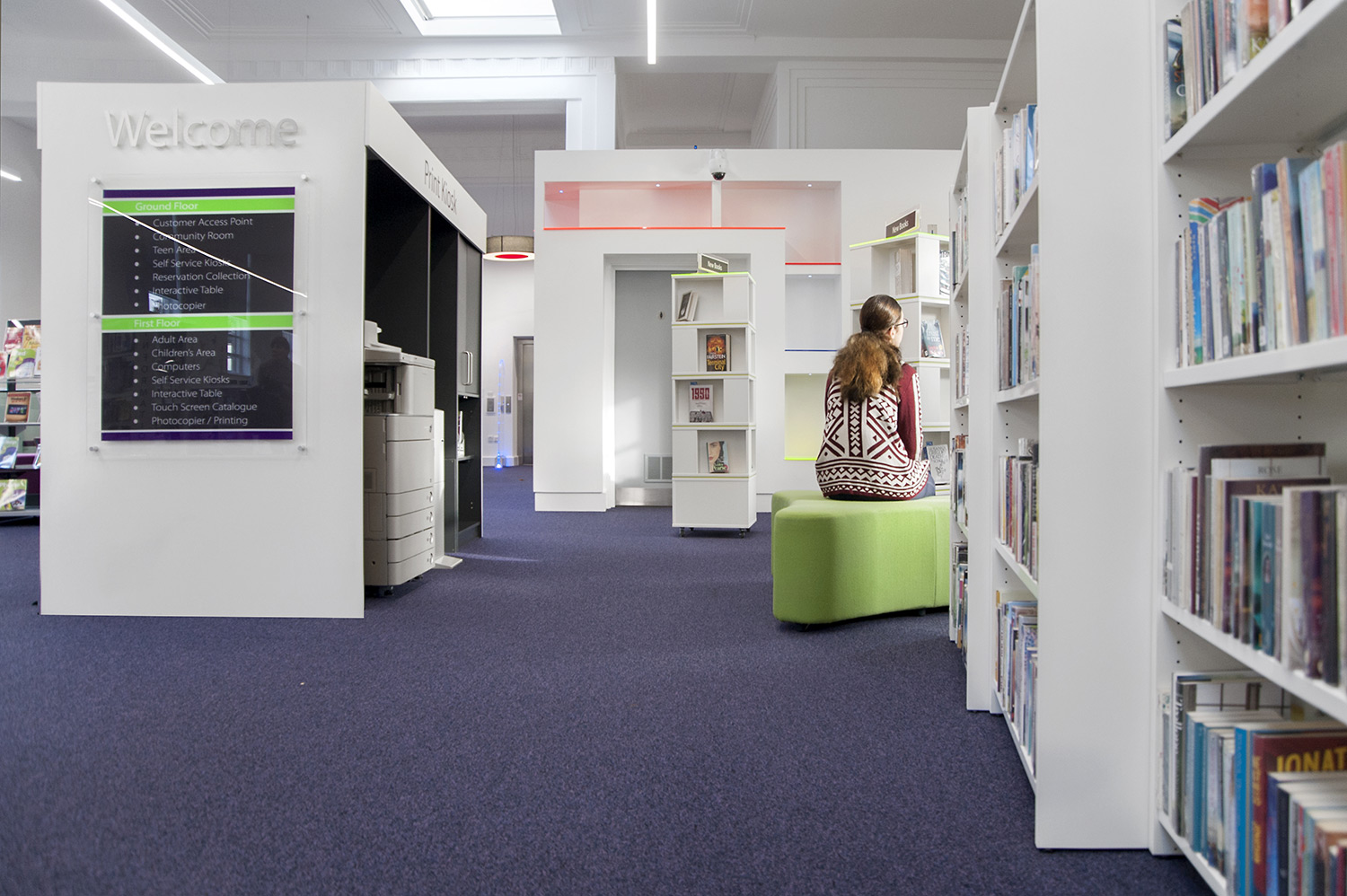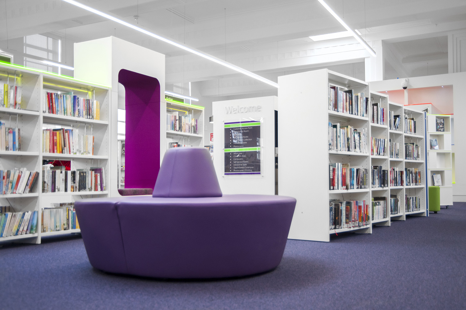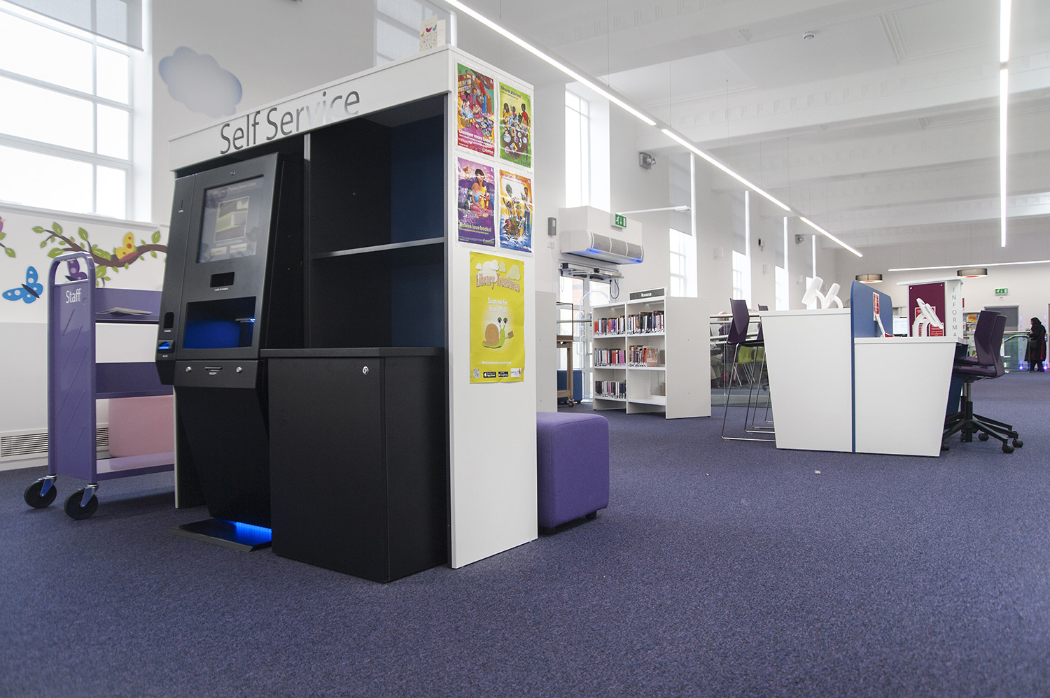 Producten die in de Openbare bibliotheek Palmers Green, London, Verenigd Koninkrijk gebruikt worden