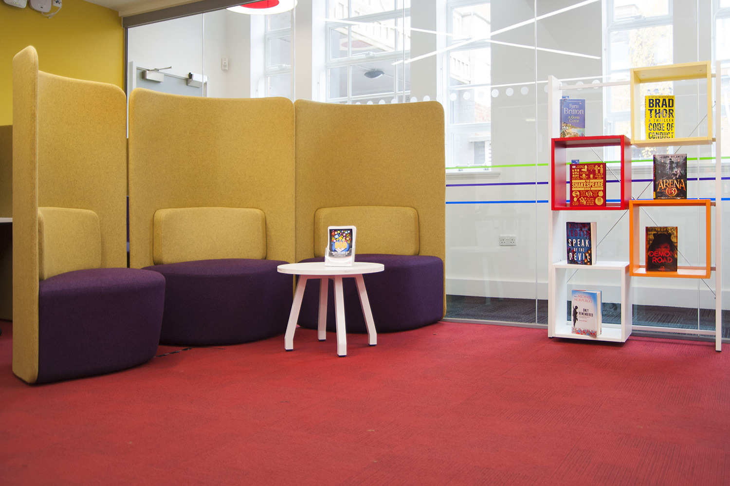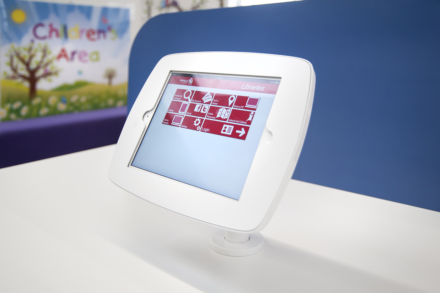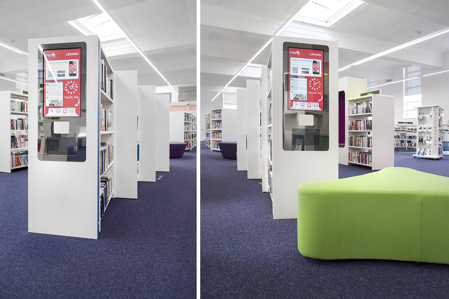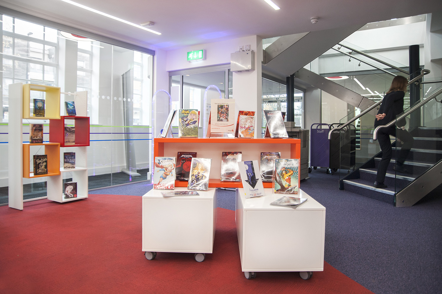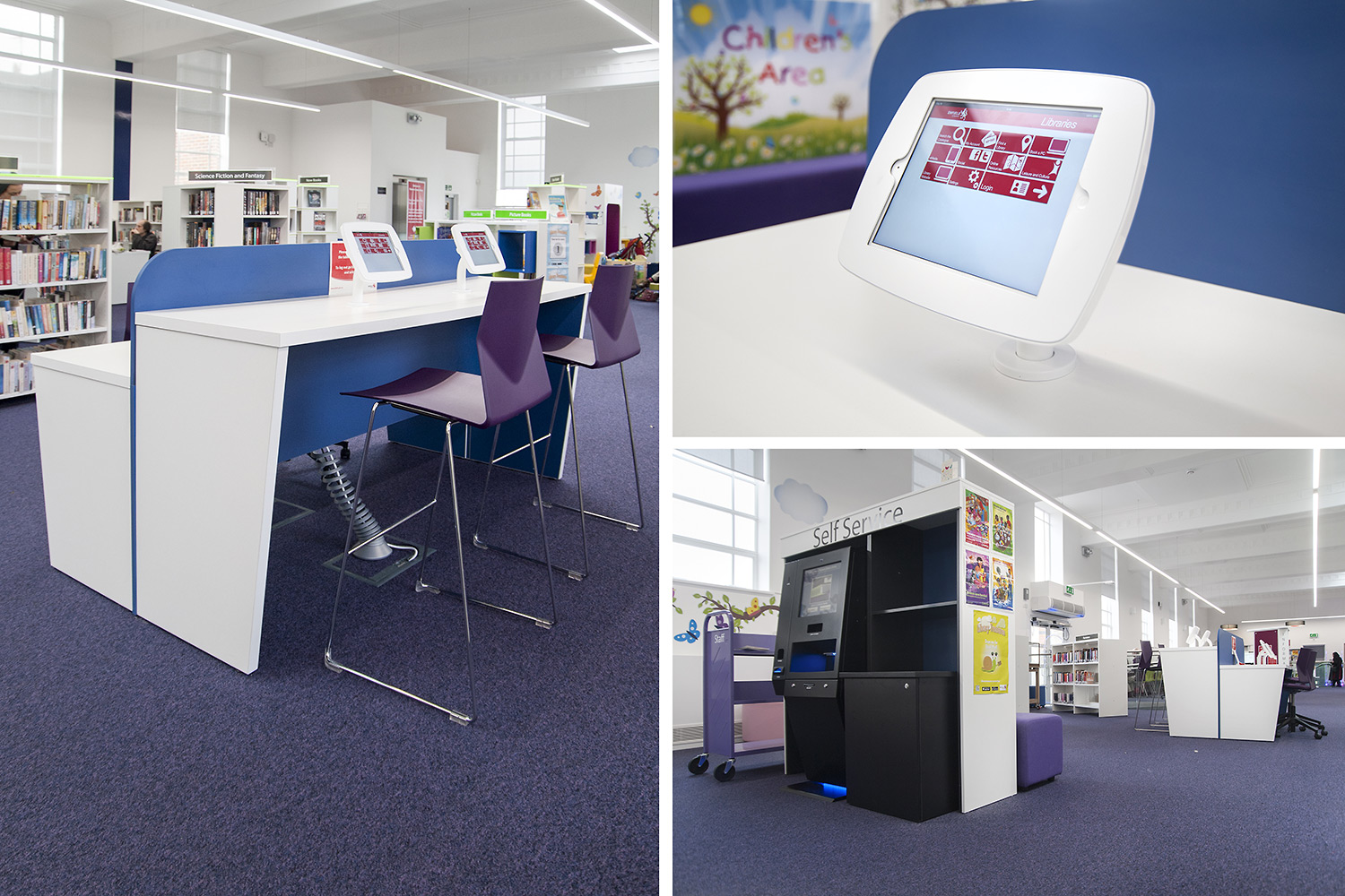 Producten die in de Openbare bibliotheek Palmers Green, London, Verenigd Koninkrijk gebruikt worden