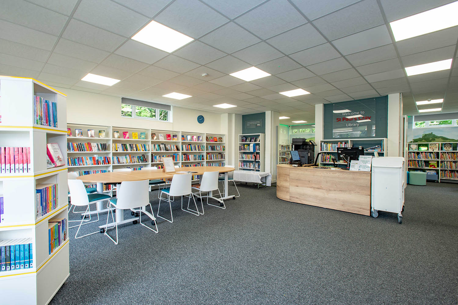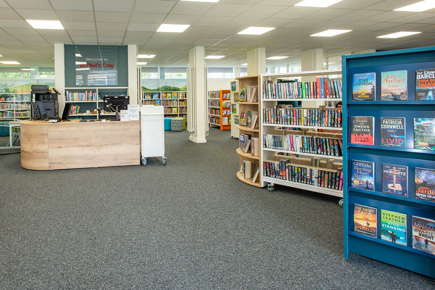De bib van Saint Paul’s Cray is een van de kleinere bibliotheken in het Londense district Bromley en werd kort na de oorlog opgetrokken, toen bouwmaterialen schaars waren. Op de toevoeging van een kleine loungehoek na, is het gebouw grotendeels onveranderd gebleven sinds de jaren 50. Daar kwam deze zomer verandering in, met een ingrijpende herinrichting om de bibliotheek en het gemeenschapsdienstencentrum van Bromley, waar inwoners terechtkunnen voor opleidingen en advies, samen onder één dak te brengen.