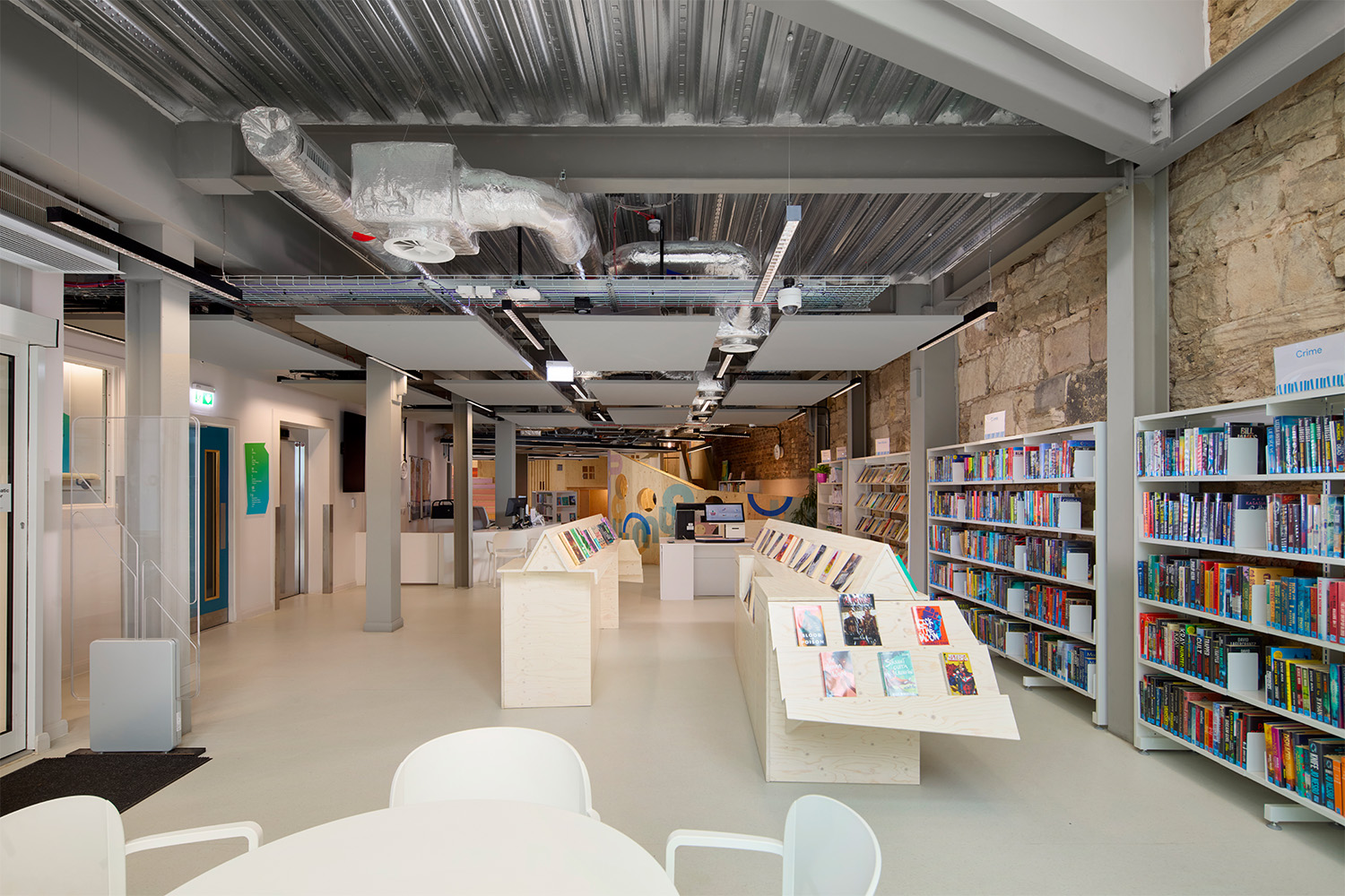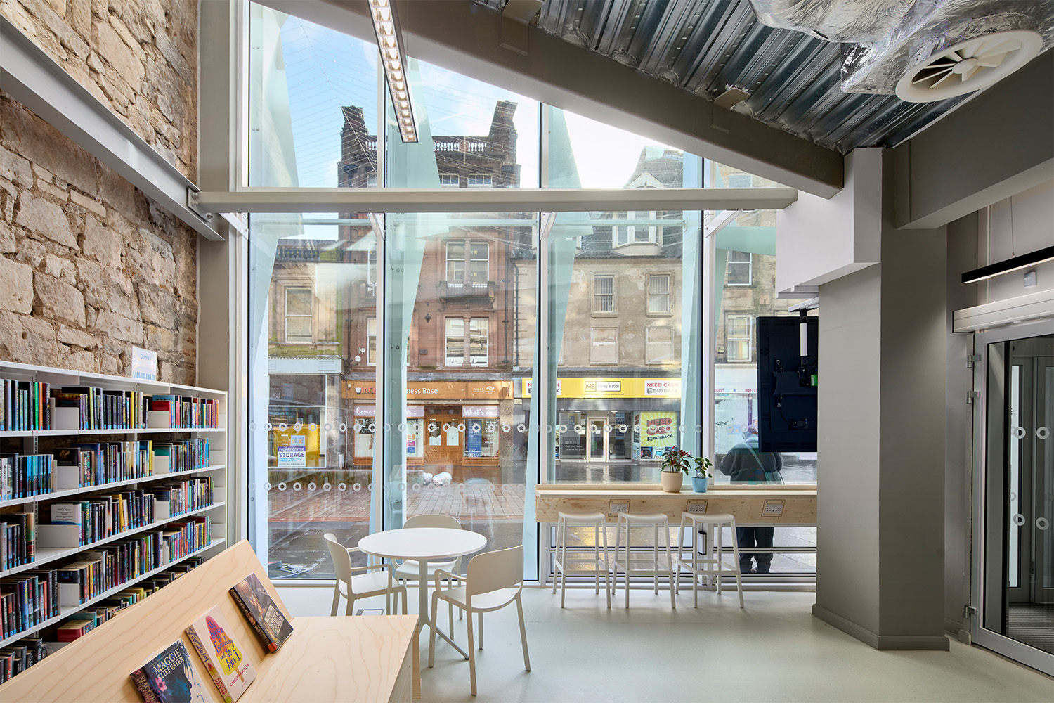 Voor dit project werden de vier verdiepingen van het voormalige winkelpand volledig gerenoveerd en werd het gebouw voorzien van een moderne voorgevel. De begane grond bestaat uit een ontvangstruimte en een plek waar iedereen welkom is om te genieten van een van de beste bibliotheekfaciliteiten van Schotland.