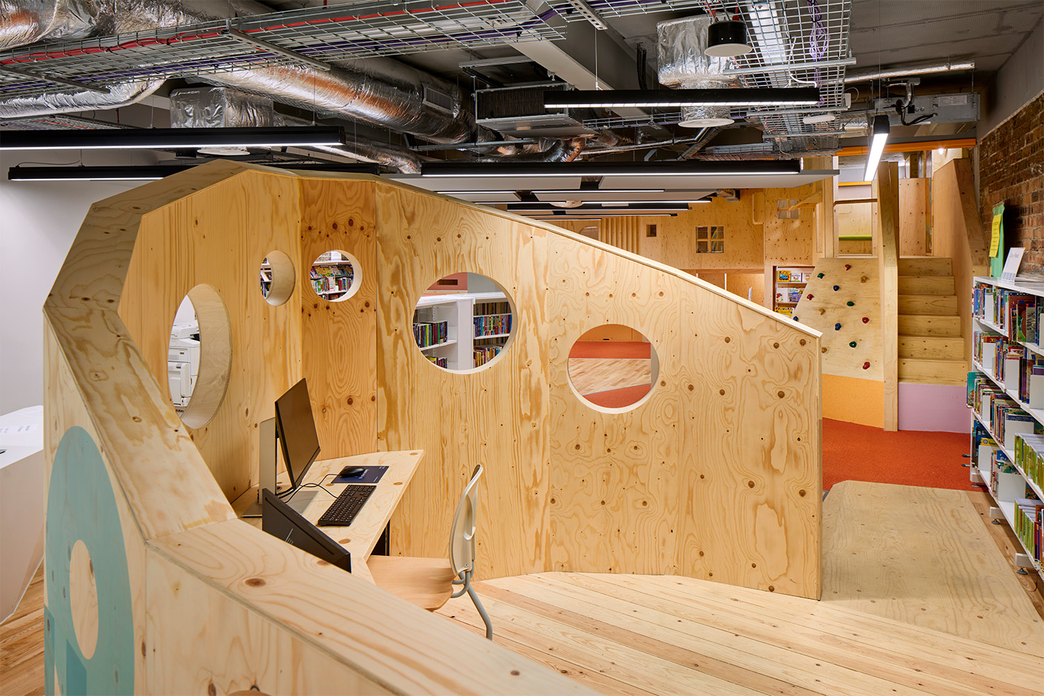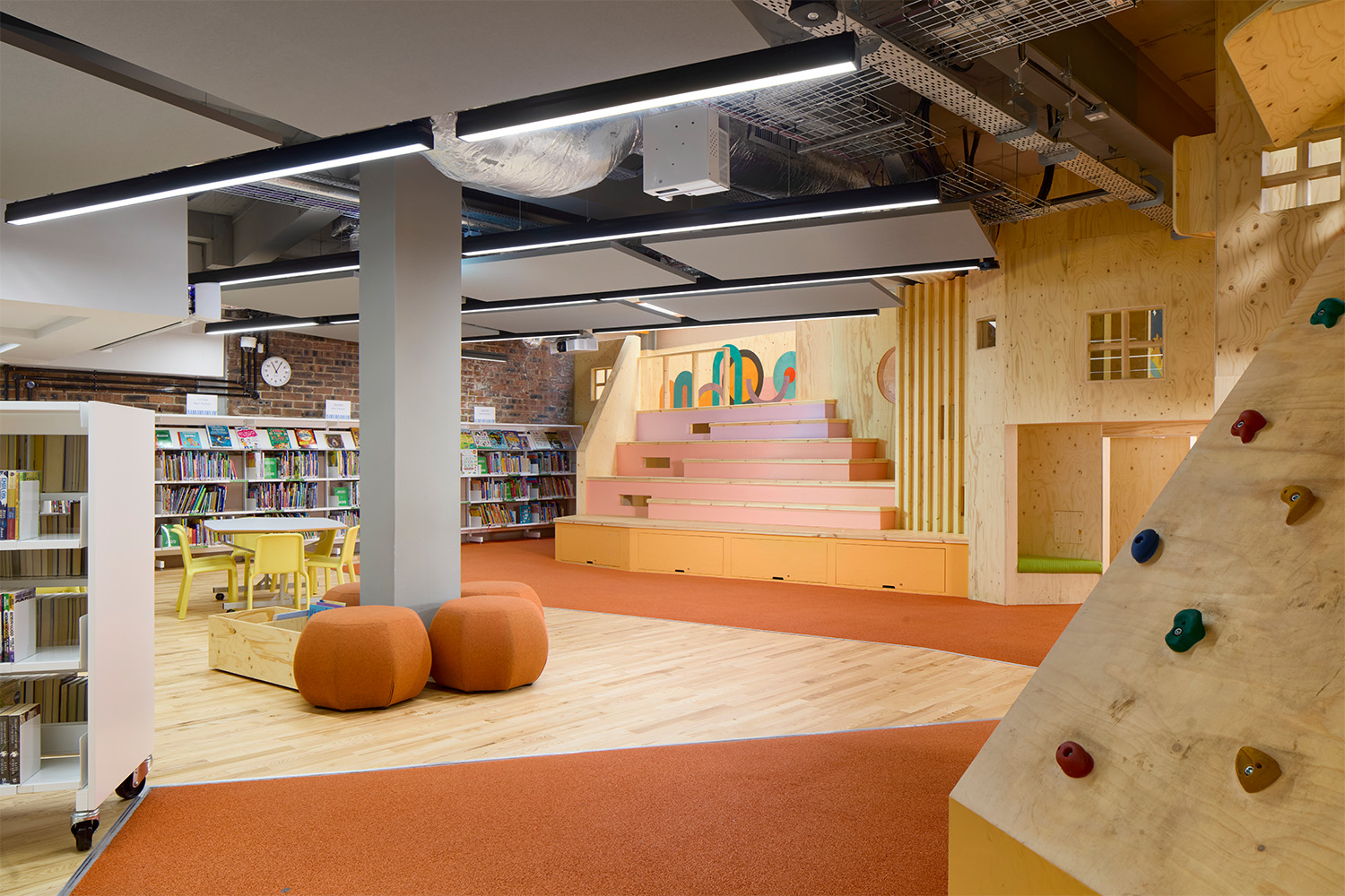 Een foyer die toegankelijk is vanaf de High Street leidt naar geheime ruimtes in de kinderbibliotheek waar kinderen naar hartenlust kunnen spelen en ontdekken. Kinderbibliotheek en voorleesruimte met speelstructuur met ontwerpen van de Schotse kunstenares Claire Barclay. De zaal op de eerste verdieping huisvest de hoofdcollectie van de bibliotheek en leidt naar de evenementenruimtes voor vergaderingen en optredens. De tweede verdieping is voorzien van een rustige leeszaal, een studiezaal en een buitenruimte met een verhoogde tuin.