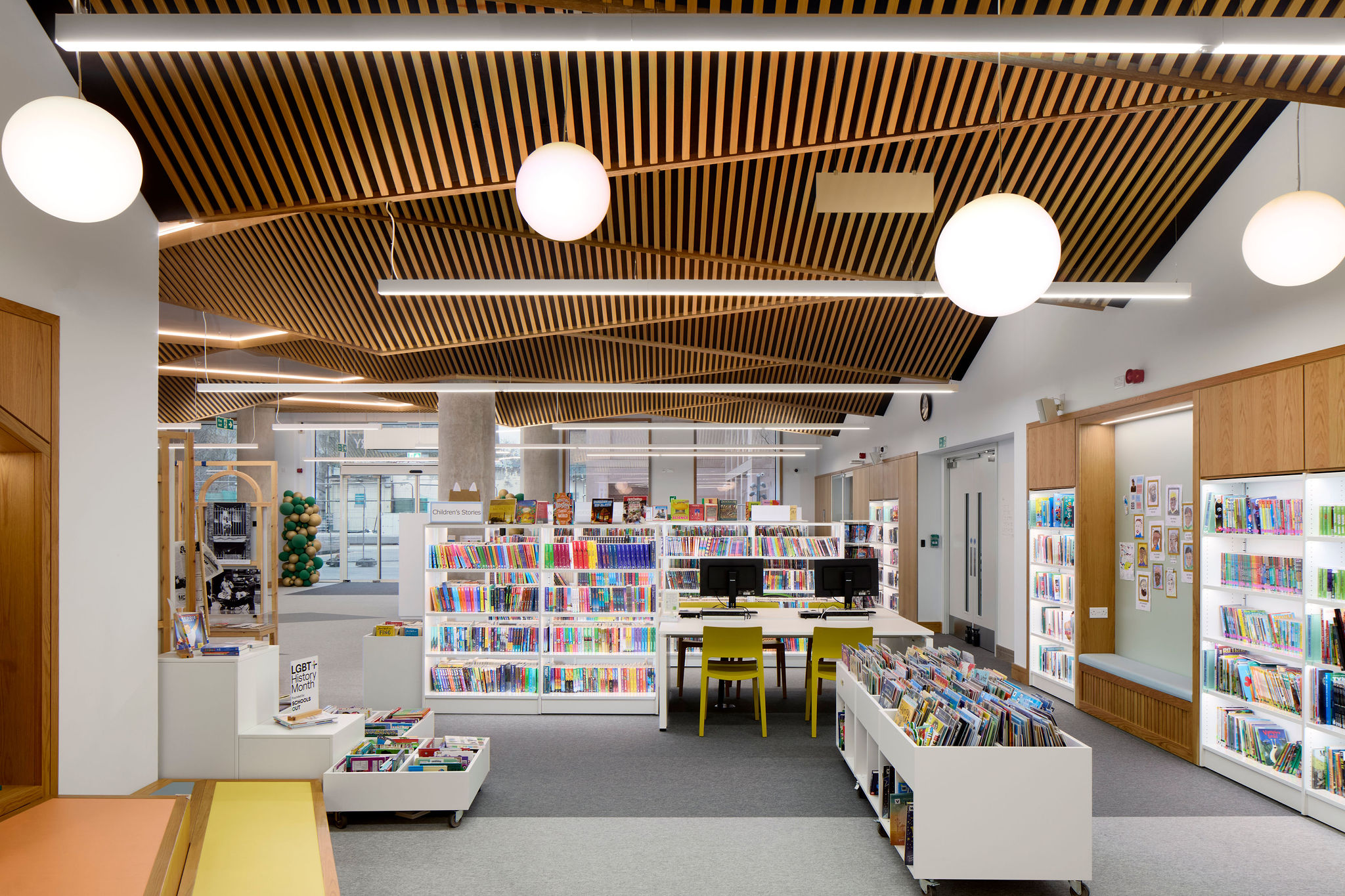 De bibliotheek is volledig rolstoeltoegankelijk met gelijkvloerse toegang en is royaal voorzien van opslagruimte. Door het gebruik van natuurlijke materialen heerst er in het complex een lichtrijke atmosfeer.