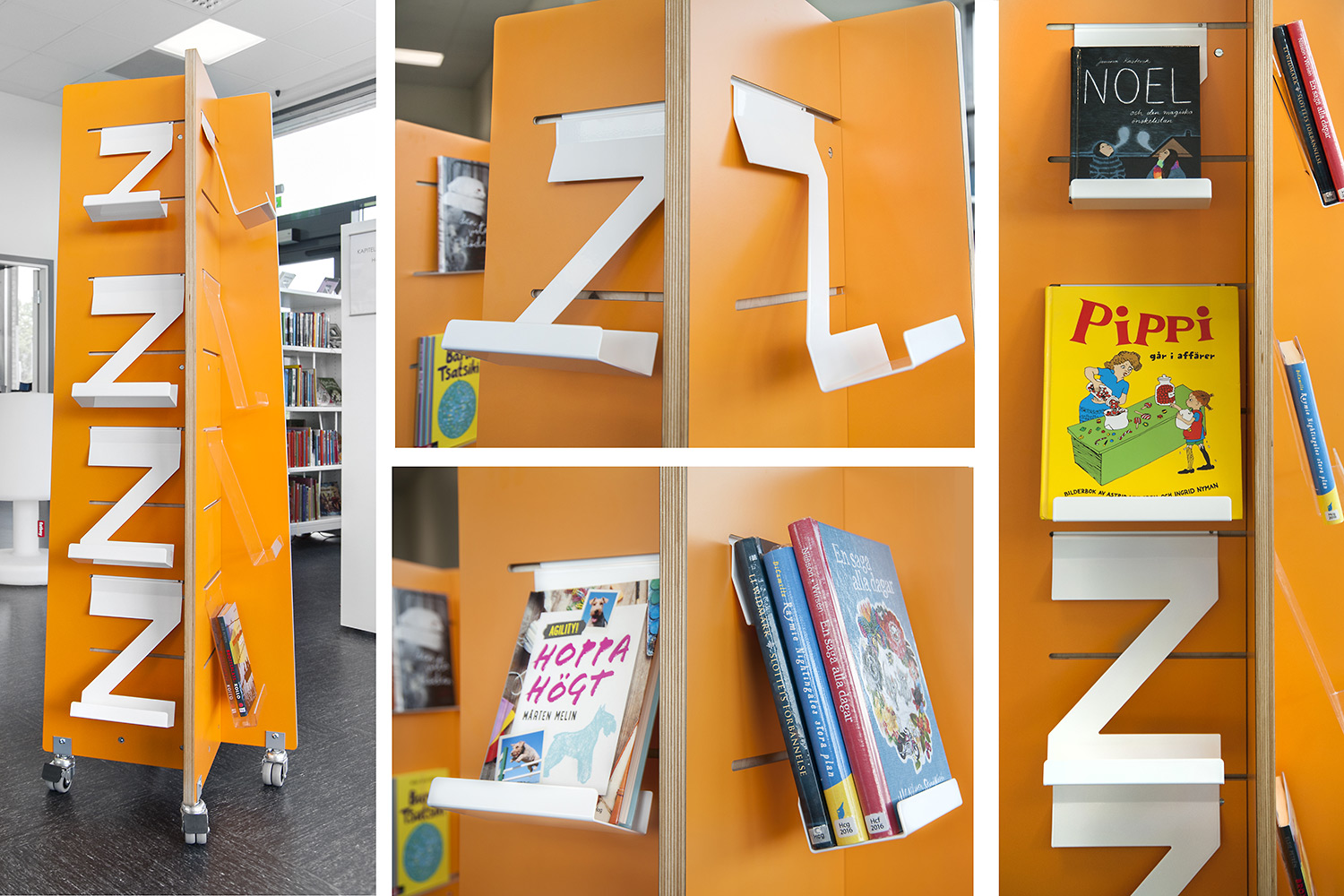 Het rekkensysteem moest deels voorzien worden van wielen zodat alles makkelijk verplaatsbaar is om zo voor meer flexibiliteit te zorgen en de mogelijkheid te bieden om delen van de ruimte voor verschillende evenementen te kunnen gebruiken. Op sommige plaatsen werden eindpanelen gebruikt om er een Eureka zoekstation aan te bevestigen terwijl de eindpanelen op andere plaatsen gebruikt worden om signalisatie op aan te brengen. Om nieuwigheden en thema’s in de kijker te zetten werd er gebruik gemaakt van de Quattro torens in wit en oranje en deze in verschillende hoogtes.