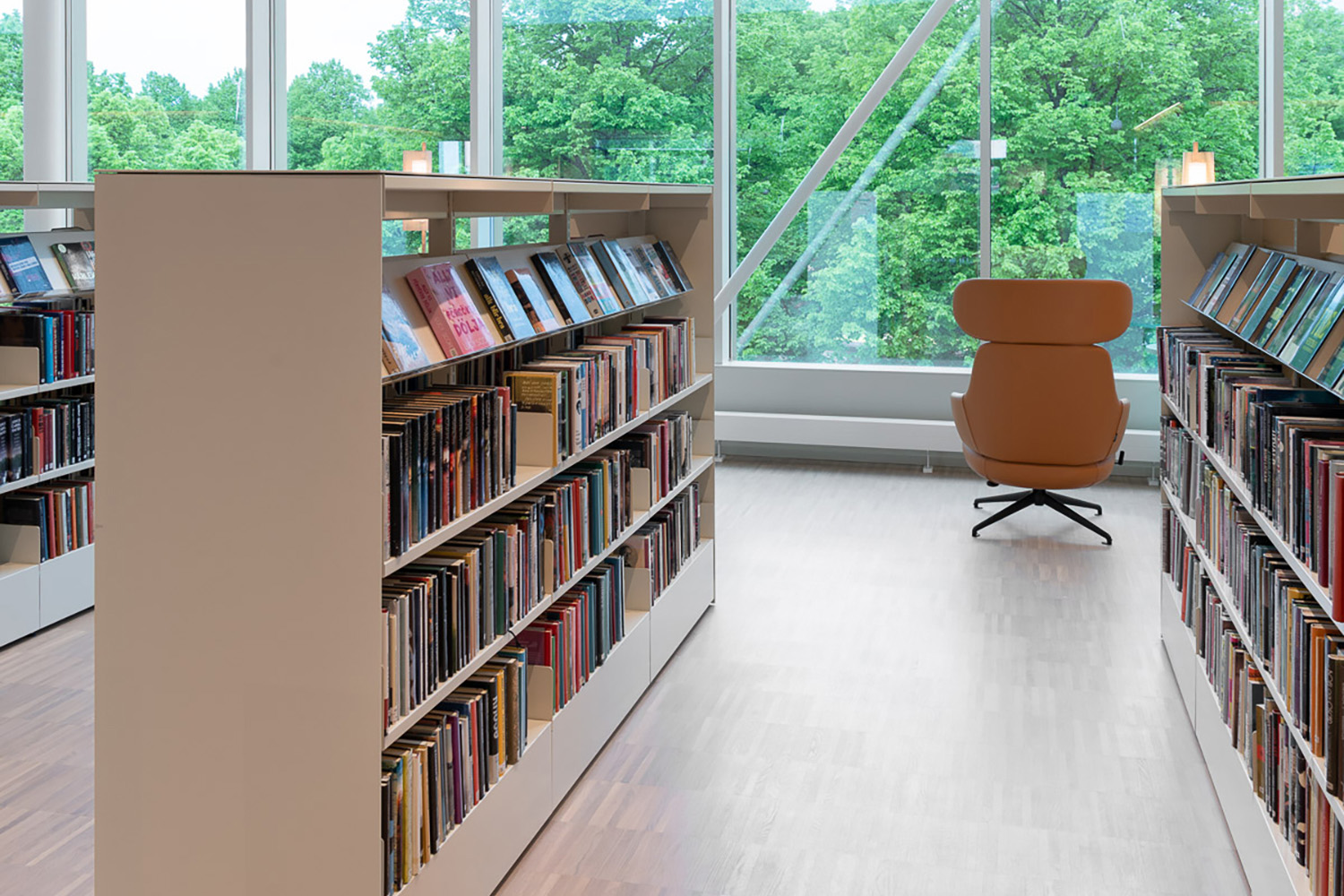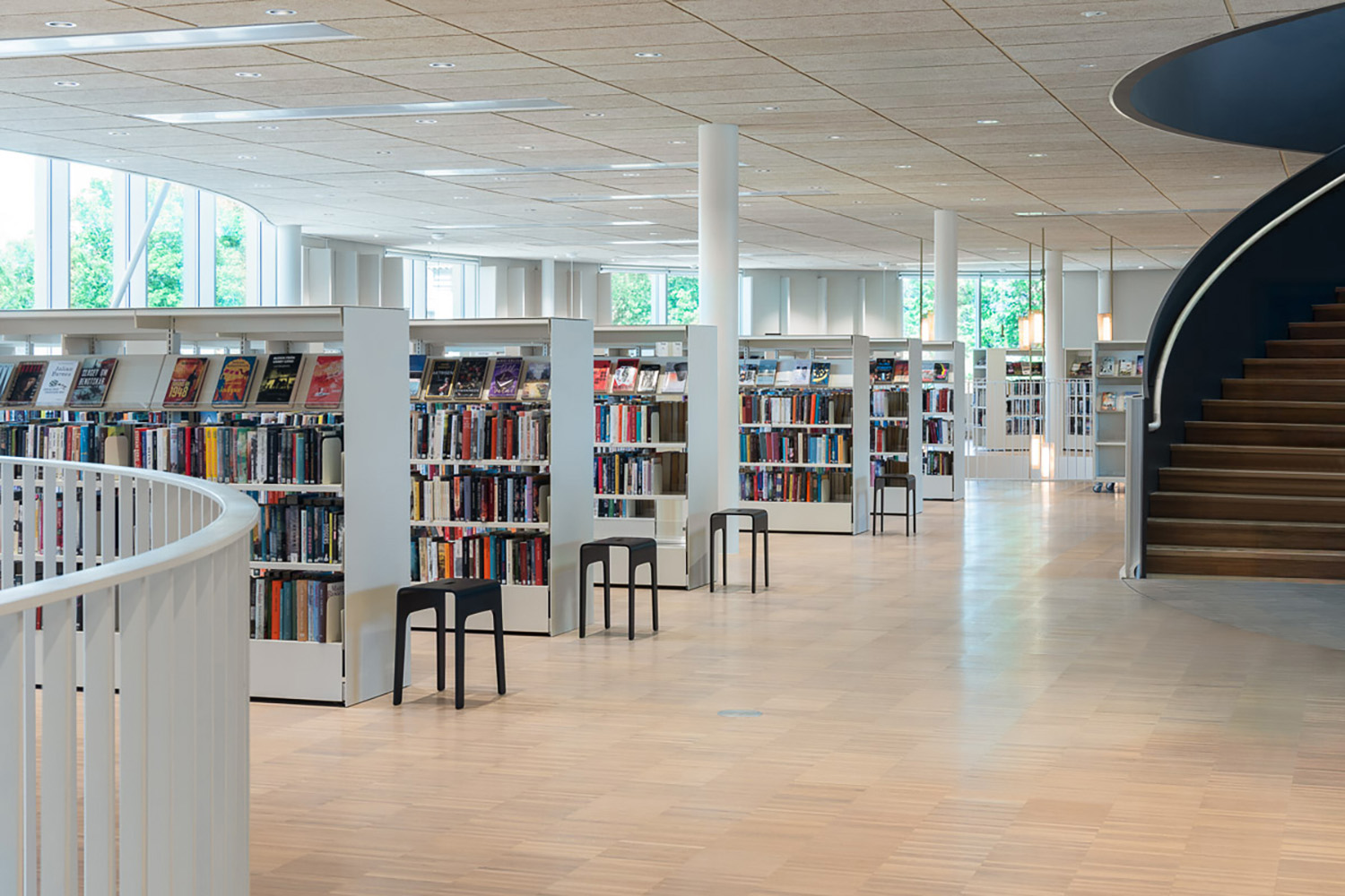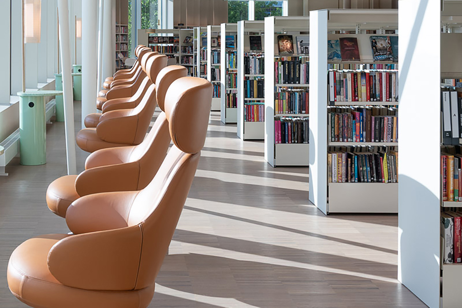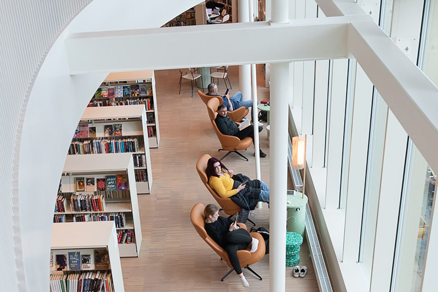 Het interieurontwerp zorgt voor een harmonieuze flow door het hele gebouw en draagt bij aan de warme en uitnodigende sfeer. Het ontwerp is een combinatie van esthetiek en functionaliteit, waarbij materialen en technologie harmonisch samenwerken om een verrijkende gebruikerservaring te creëren. De uitgebreide collectie boeken en digitale bronnen wordt ondersteund door een toegewijd team medewerkers, die ervoor zorgen dat de bibliotheek een levendige hoeksteen van het lokale culturele leven blijft. De bibliotheek is niet alleen een plek om boeken uit te lenen en te lezen, maar ook een innovatieve omgeving die de gemeenschap versterkt door middel van studie, creativiteit en gedeelde ervaringen.
