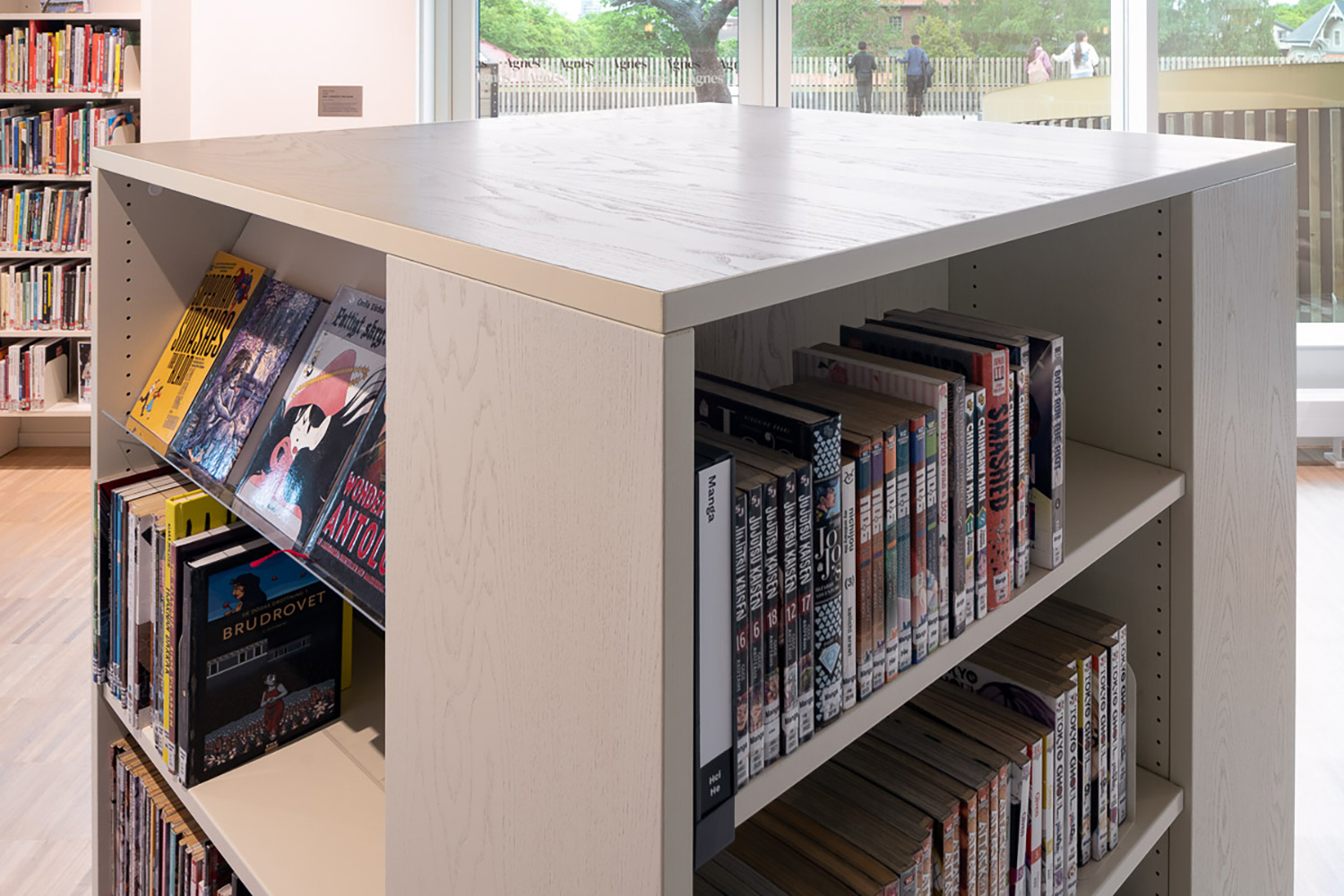 De kern van Agnes Kulturhus wordt gevormd door de bibliotheek, een dynamisch centrum voor kennis en creativiteit. De bibliotheek is ontworpen om te inspireren en biedt een grote verscheidenheid aan zit- en leesruimtes, speciale afdelingen voor kinderen en jongvolwassenen evenals moderne studieruimtes. Nieuw in deze faciliteit zijn de VR-ruimtes, een podcaststudio en andere creatieve zones die in de voormalige bibliotheek niet beschikbaar waren.