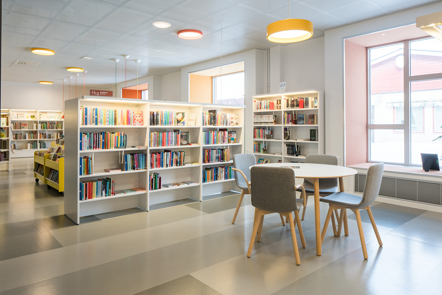 De bibliotheek is gehuisvest in een gebouw dat profiteert van het natuurlijke licht door de grote ramen. Het resultaat is een lichte en gastvrije omgeving. Alle leeftijdscategorieën komen aan hun trekken: een aantrekkelijke kinderafdeling en verschillende lees- en studieplekken met gemakkelijke toegang tot de bibliotheekmaterialen op de verlichte schappen.