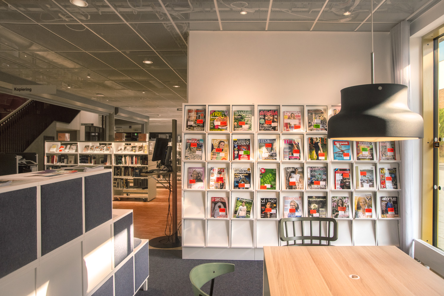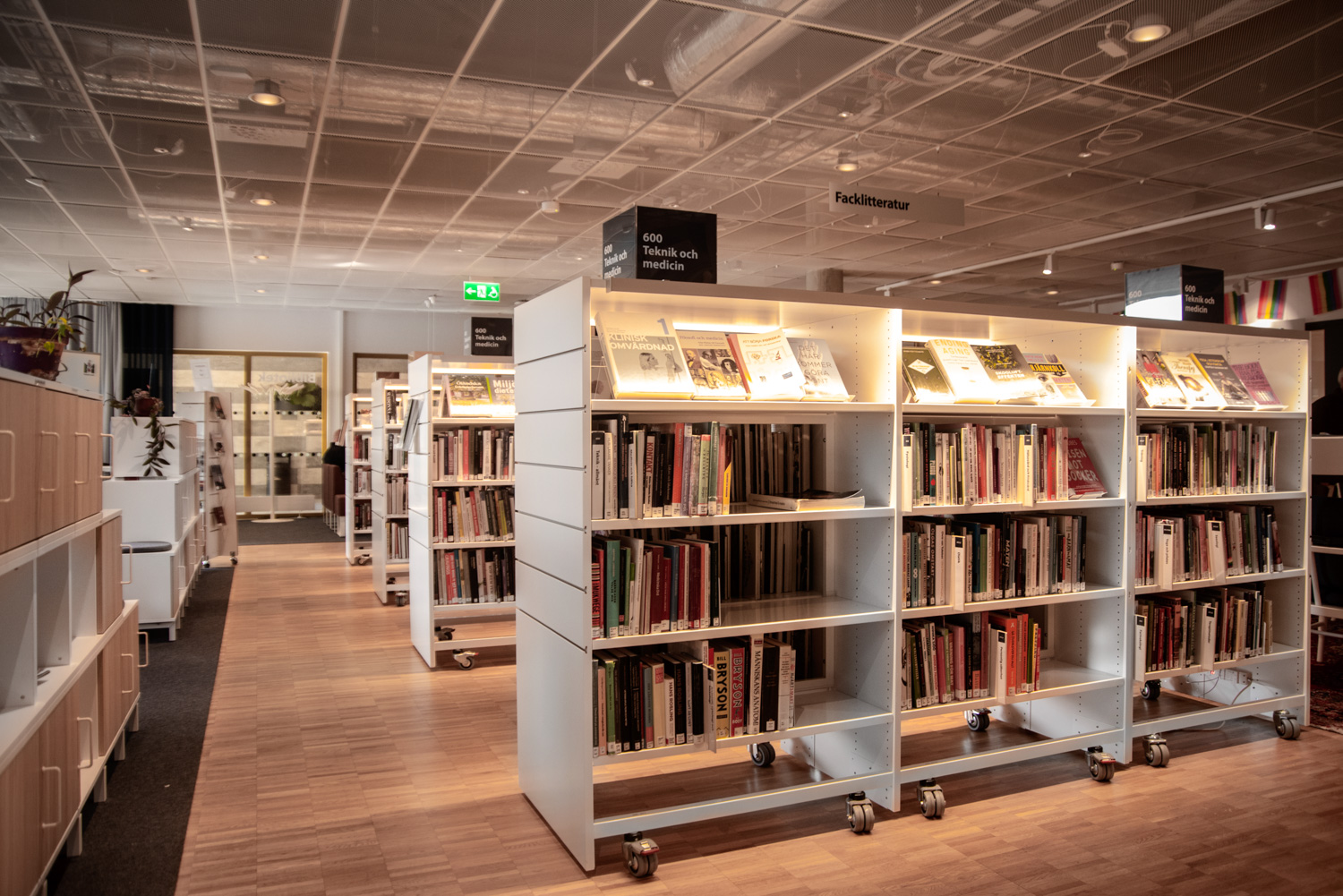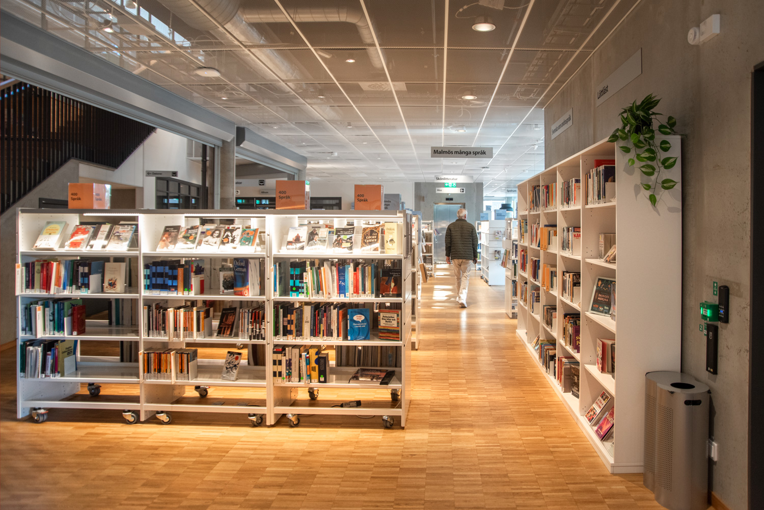 Producten die in de Openbare bibliotheek Rosengård, Malmø, Zweden gebruikt worden