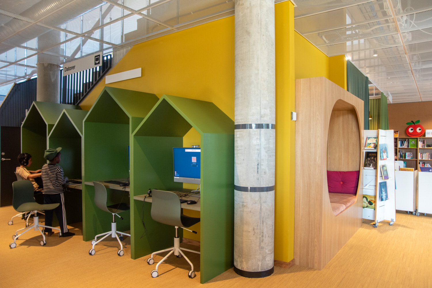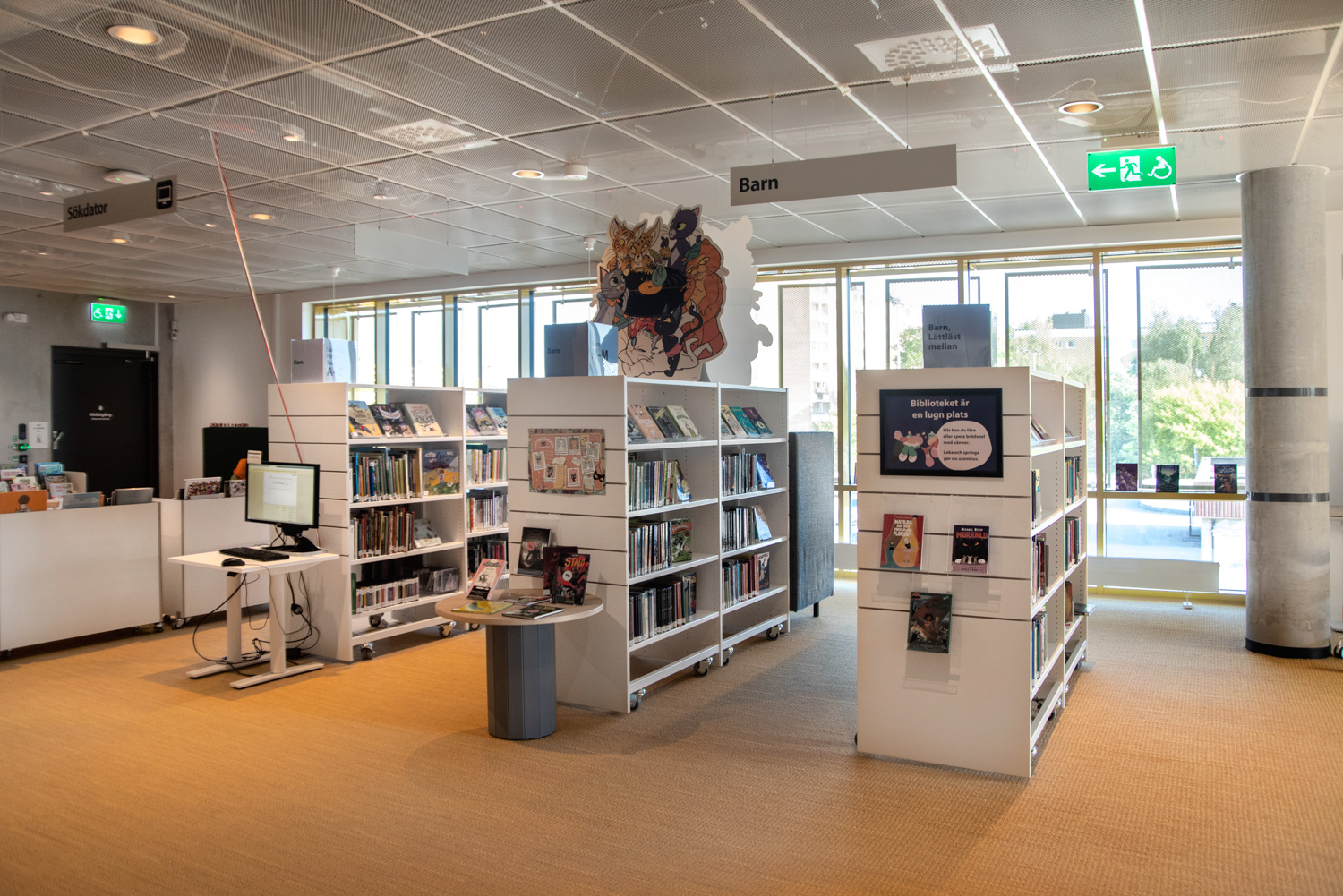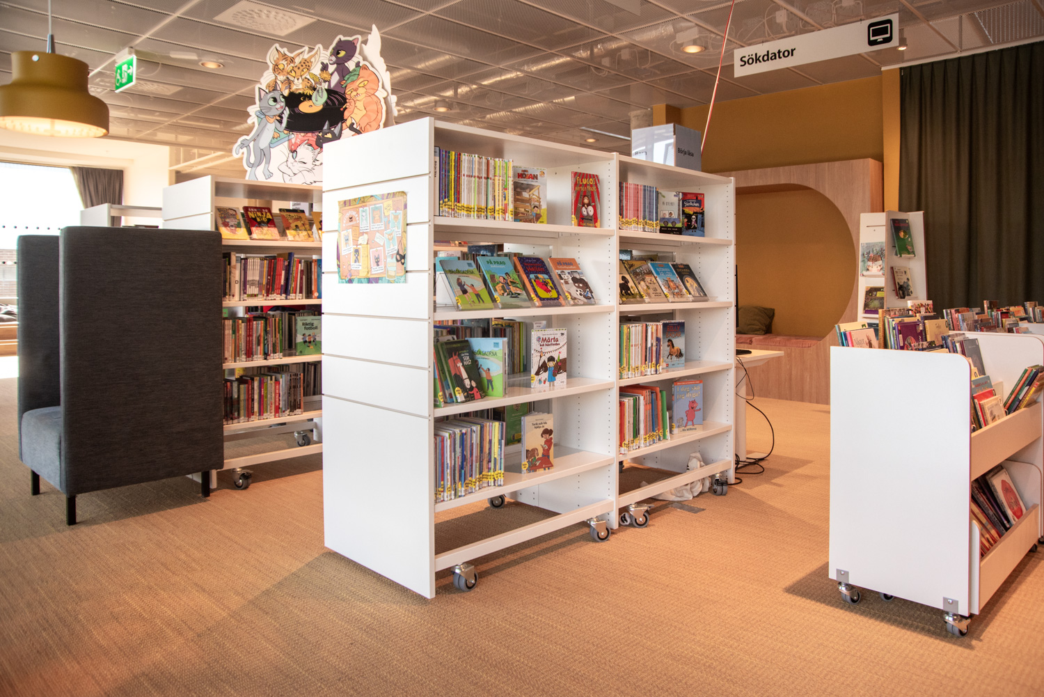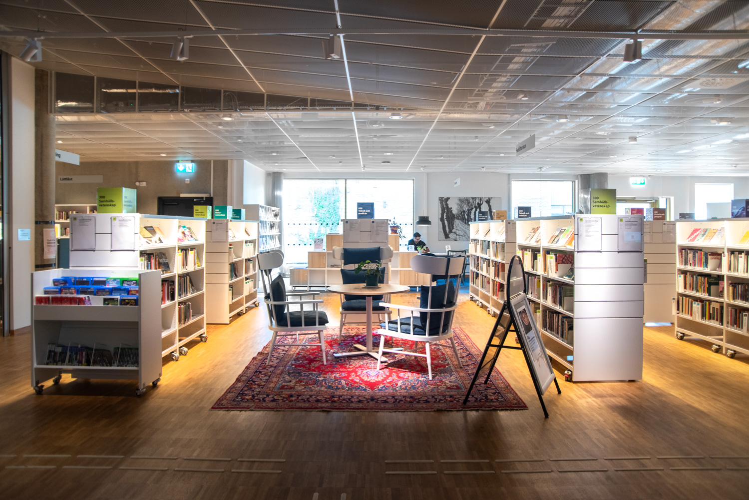 Producten die in de Openbare bibliotheek Rosengård, Malmø, Zweden gebruikt worden