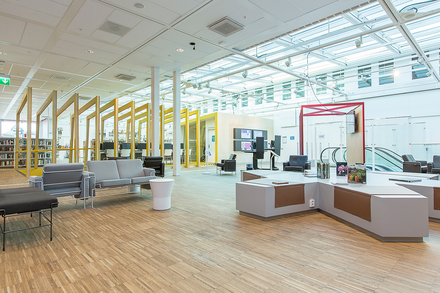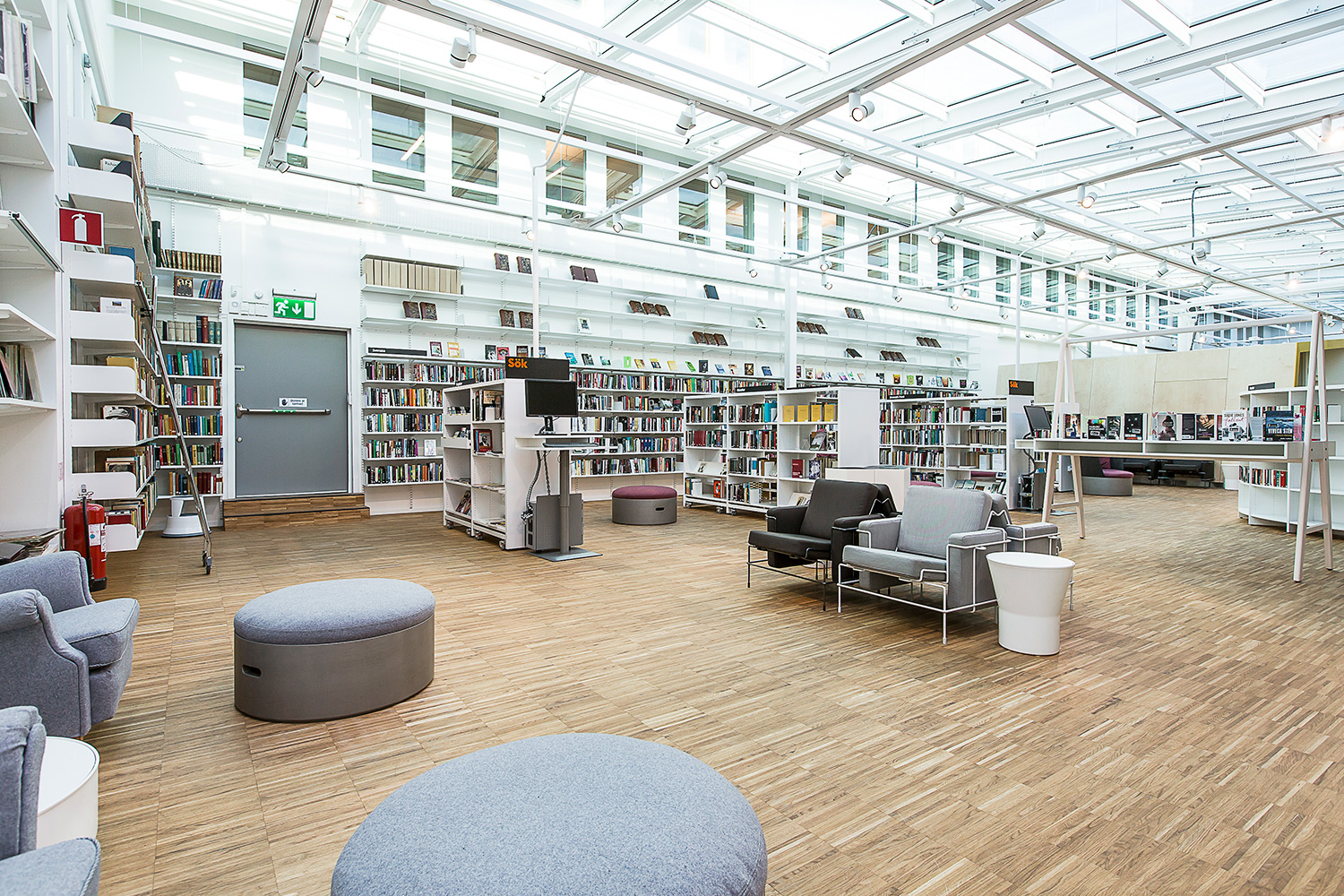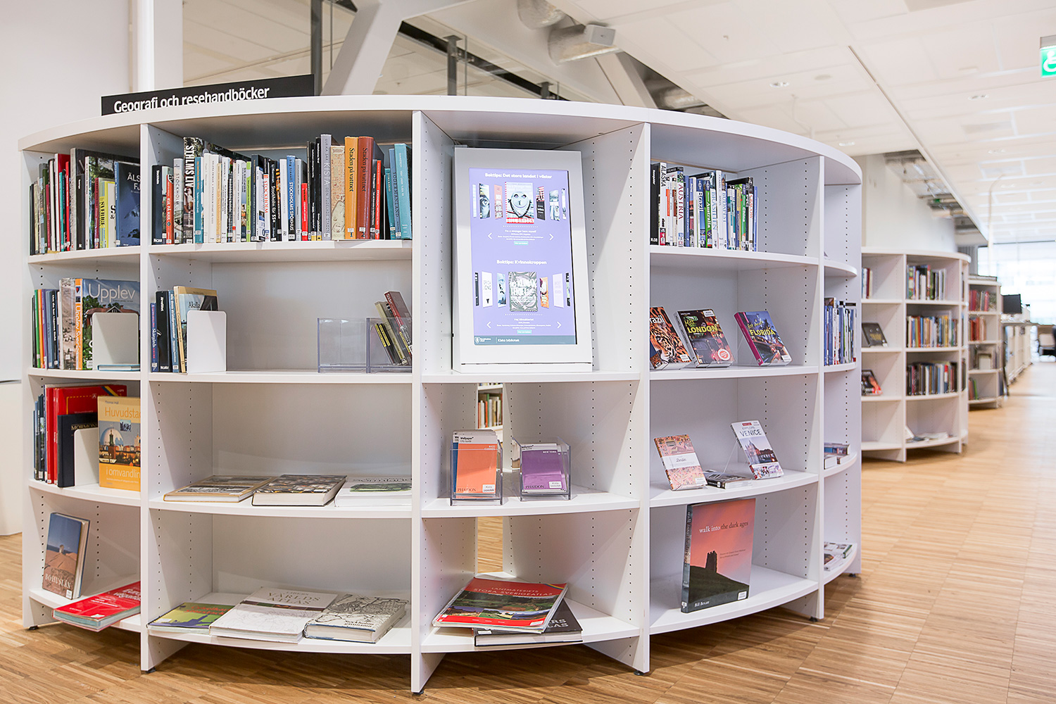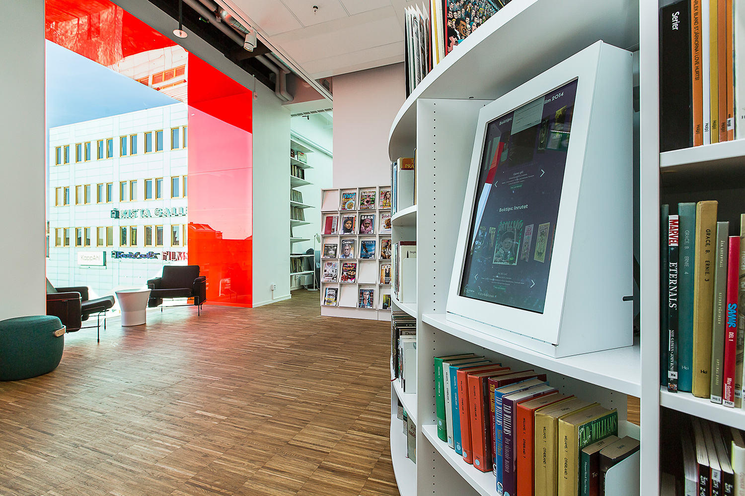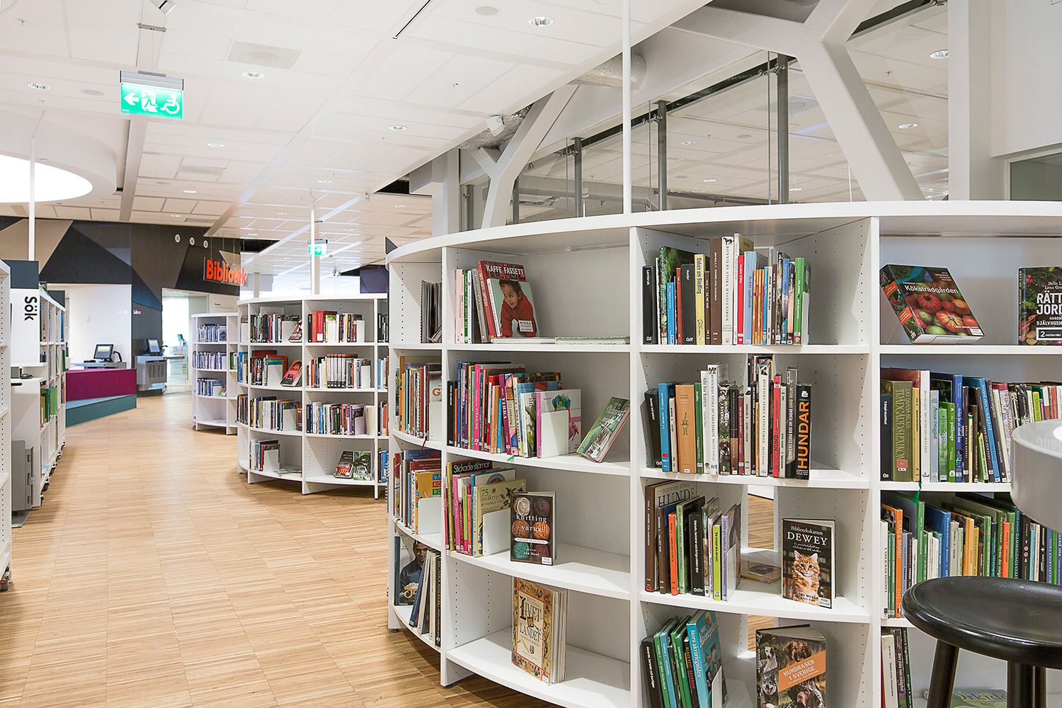 Producten die in de Openbare bibliotheek Kista, Stockholm, Zweden gebruikt worden