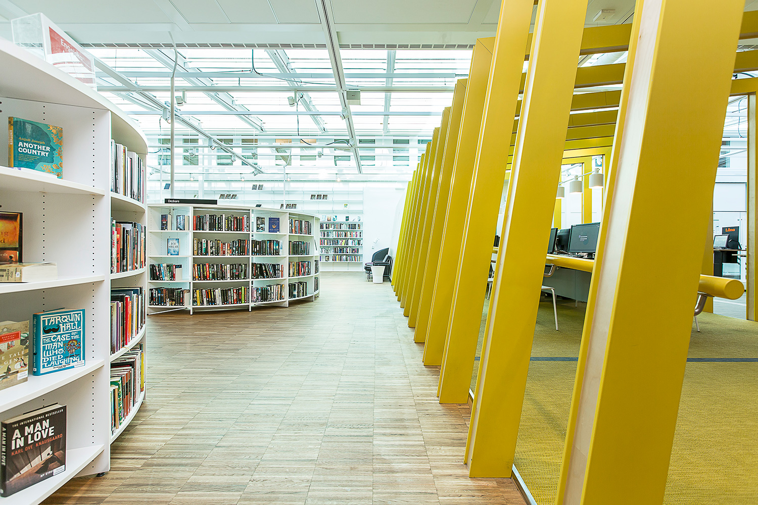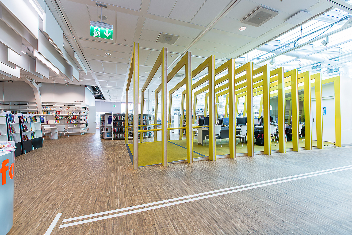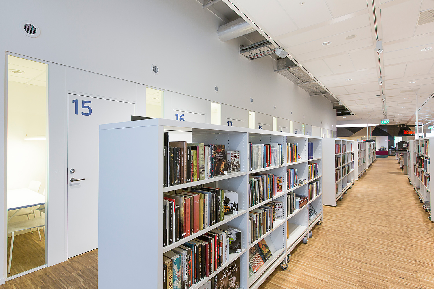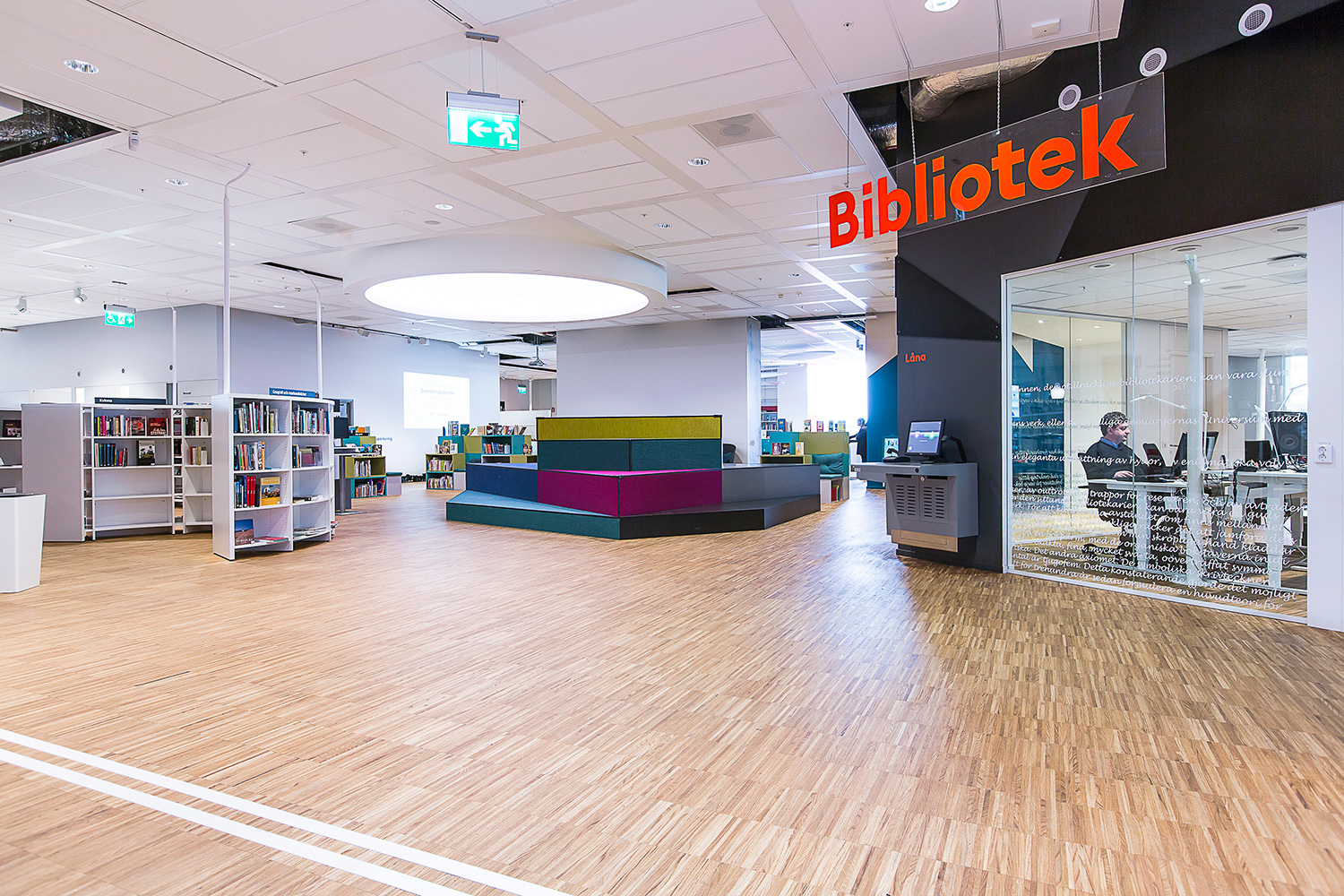 Producten die in de Openbare bibliotheek Kista, Stockholm, Zweden gebruikt worden