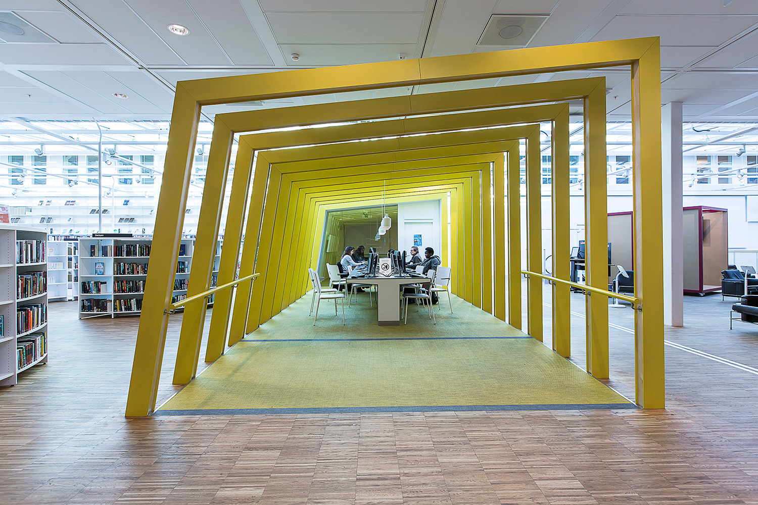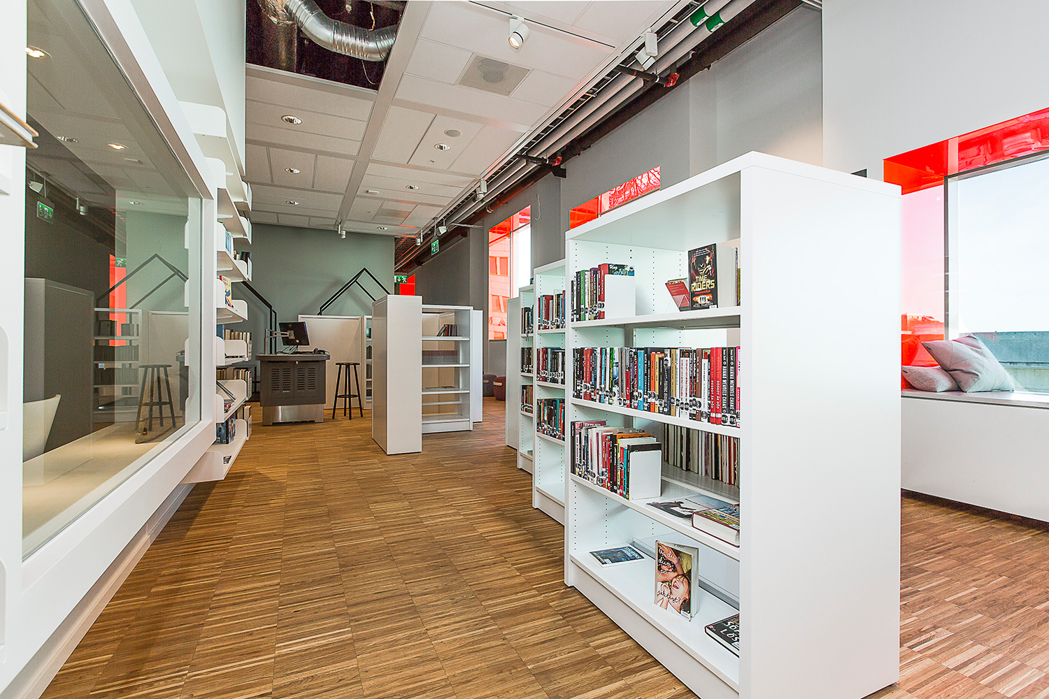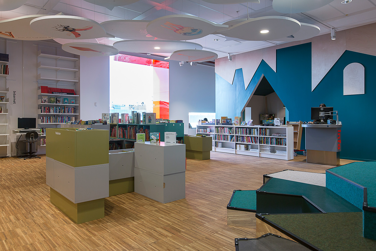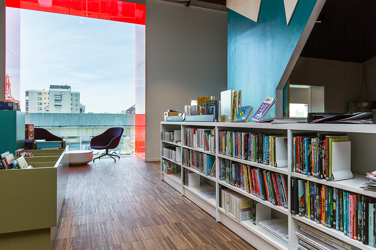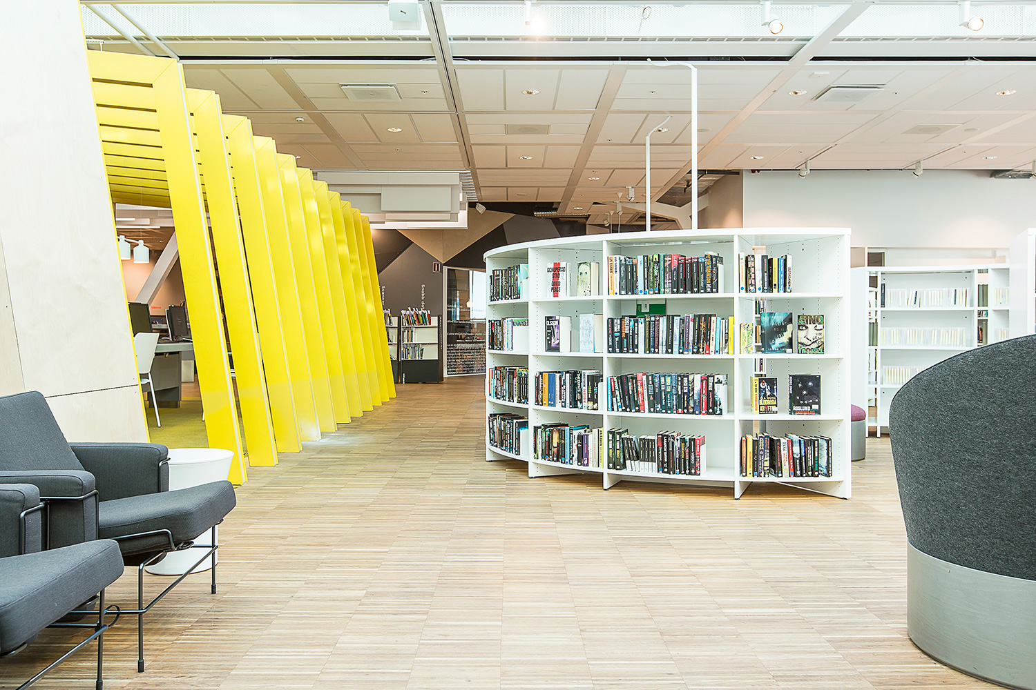 Producten die in de Openbare bibliotheek Kista, Stockholm, Zweden gebruikt worden