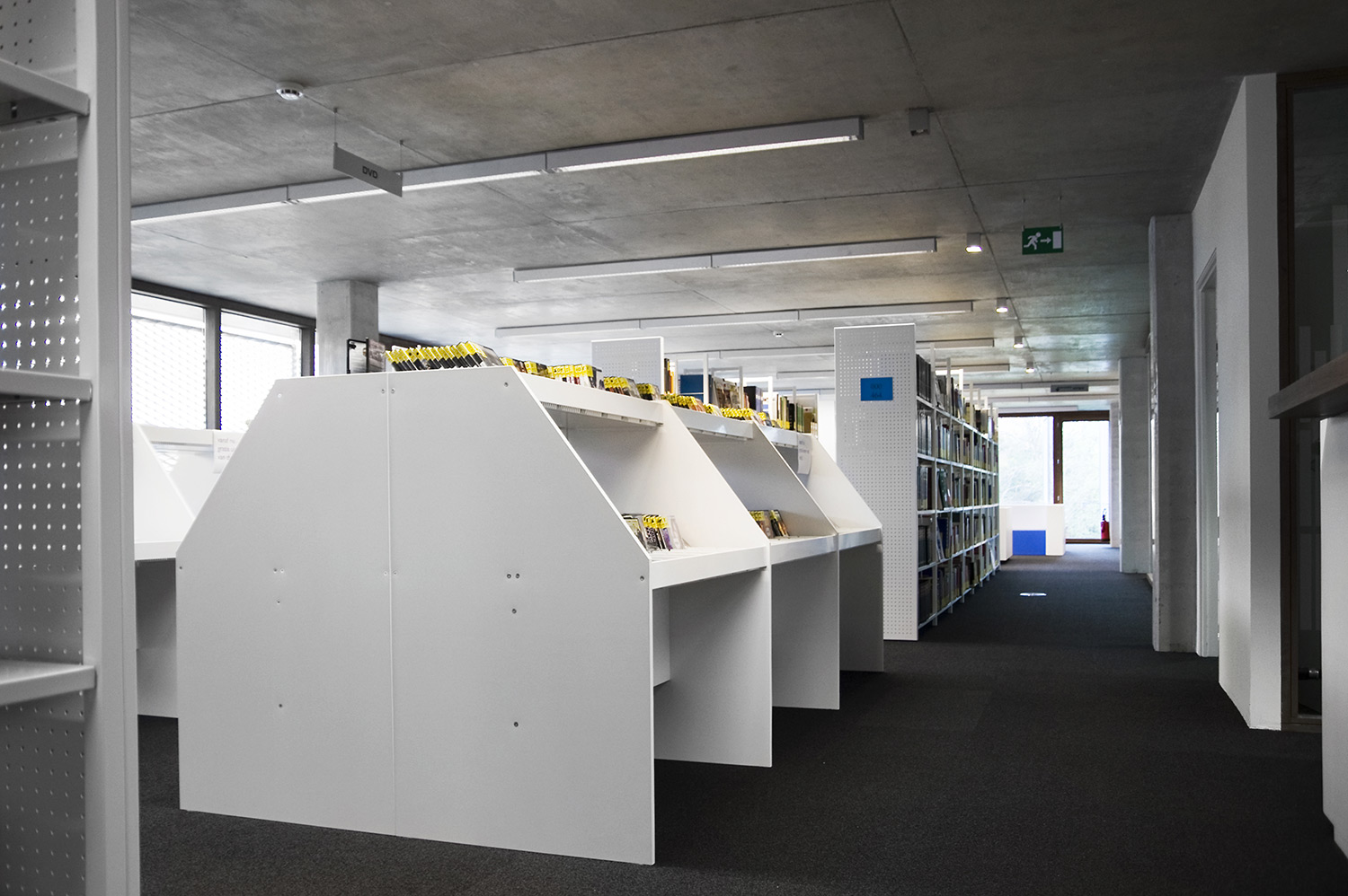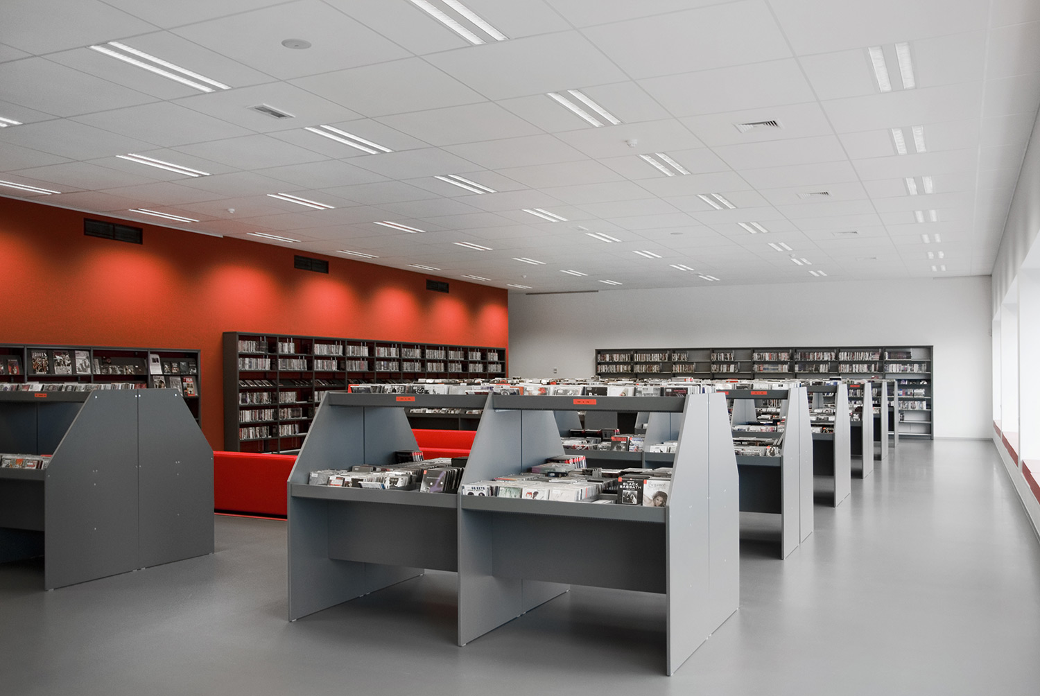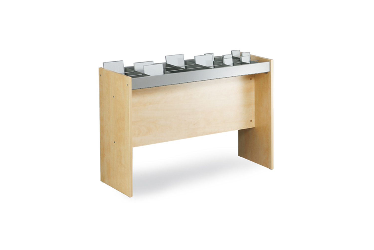 Het meubel is ook uitgerust met horizontale stangen en 6, 12 of 18 metalen verdelers afhankelijk van het model. Het bevat ook gegroefde rubber matten die de media rechtop houden.