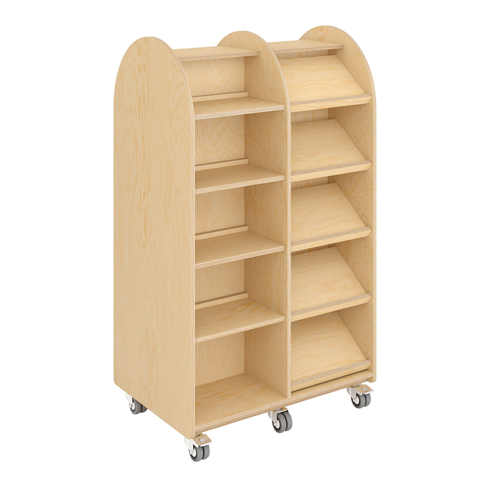 Dit rekkensysteem is geïnspireerd op het straatbeeld en dat is te zien aan de rekken die lijken op gebouwen in verschillende hoogtes en kleuren. Neem uw bezoekers mee op wandeling doorheen de bibliotheek waarbij deze “gebouwen” gevuld zijn met leuke displays, boeken en nog veel meer. Ideaal als eye-catcher voor jonge bezoekers of als tijdschriftenopslag.