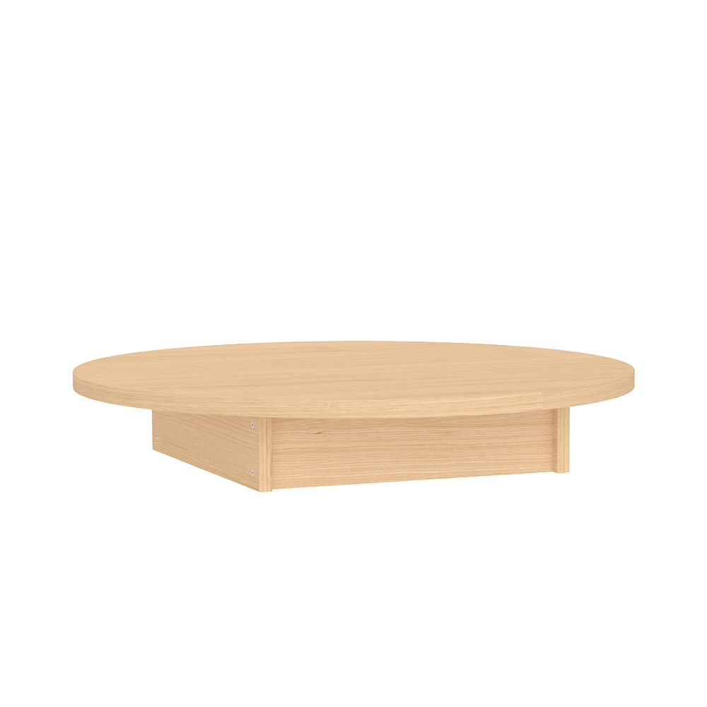 De bovenplaat is verkrijgbaar in drie dimensies: Ø80 cm, Ø90 cm en Ø90 cm met een gat in het midden. Met de versie met een gat in het midden kunt u een plant in het podium integreren, waardoor u een natuurlijk en decoratief element aan uw display toevoegt.