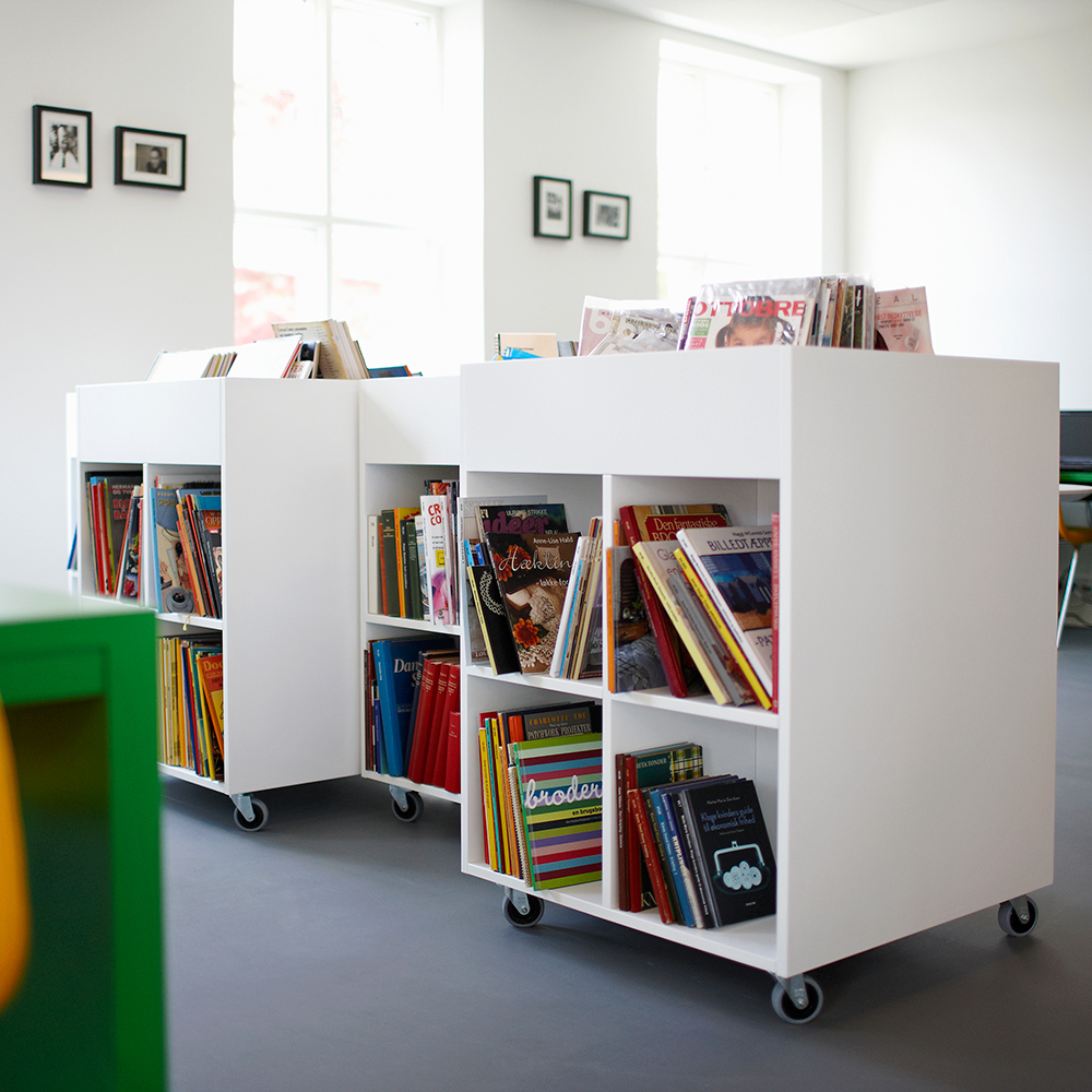 Sara is een reeks boekenbakken die beschikbaar is in zowel een vierkante als een ronde variant, in 3 verschillende hoogtes voor flexibele oplossingen in uw bibliotheekinterieur.
