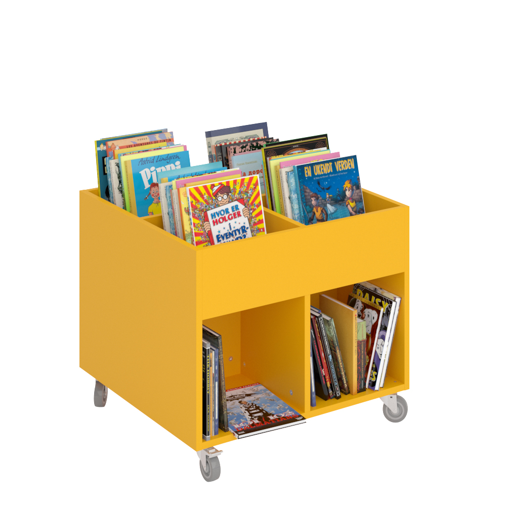Sara Midi is een prentenboekenbak met vier displaycompartimenten bovenaan en vier opbergcompartimenten onderaan. Geschikt voor kinderen.
