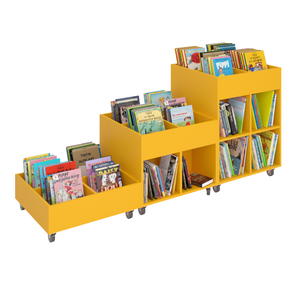 Sara is een reeks boekenbakken die beschikbaar is in zowel een vierkante als een ronde variant, in 3 verschillende hoogtes voor flexibele oplossingen in uw bibliotheekinterieur.
