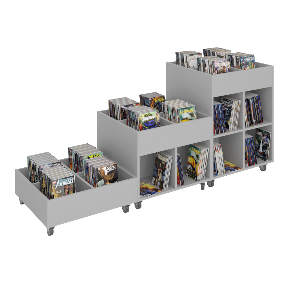 Sara is een reeks boekenbakken die beschikbaar is in zowel een vierkante als een ronde variant, in 3 verschillende hoogtes voor flexibele oplossingen in uw bibliotheekinterieur.