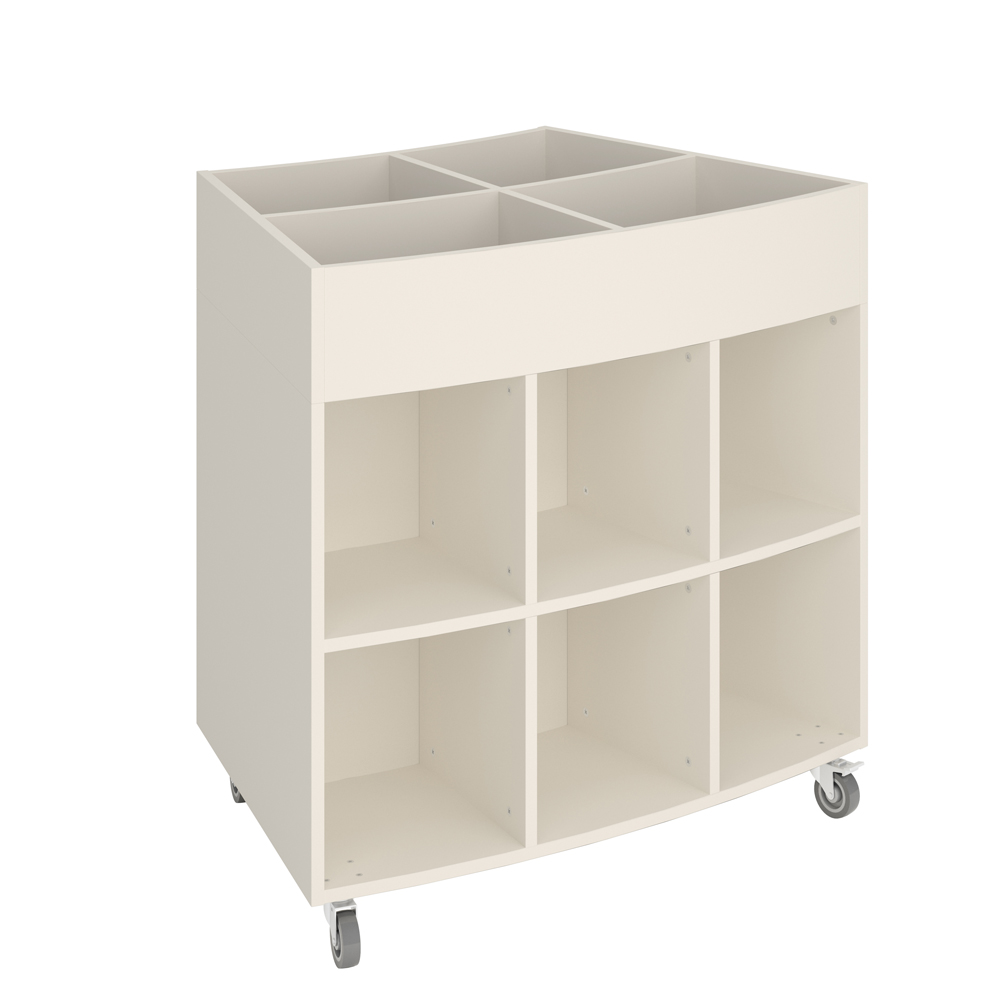 Sara Midi is een prentenboekenbak met vier displaycompartimenten bovenaan en vier opbergcompartimenten onderaan. Geschikt voor kinderen.
