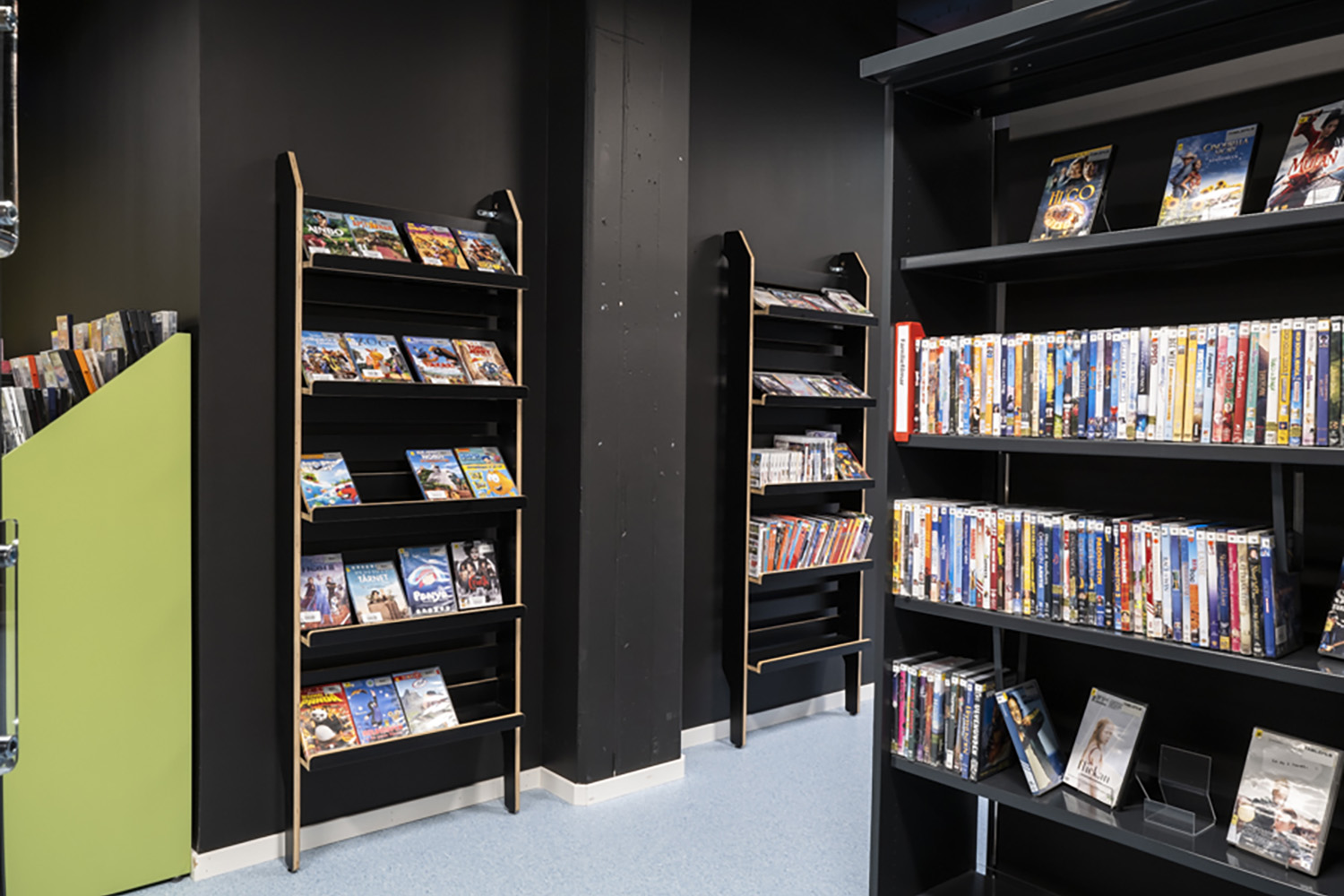 We gebruiken gelamineerd berkenmultiplex - hier met zichtbare randen - om zowel een duurzaam oppervlak als een duurzame constructie te creëren. Perfect voor de meest veeleisende bibliotheekomgevingen!
