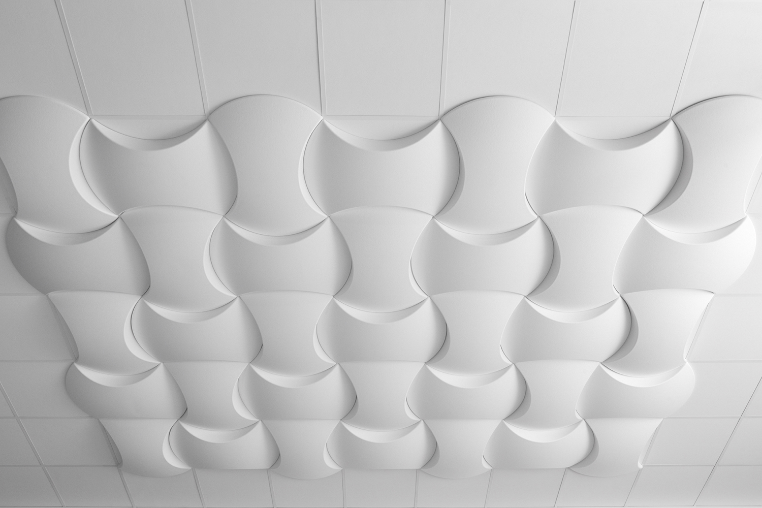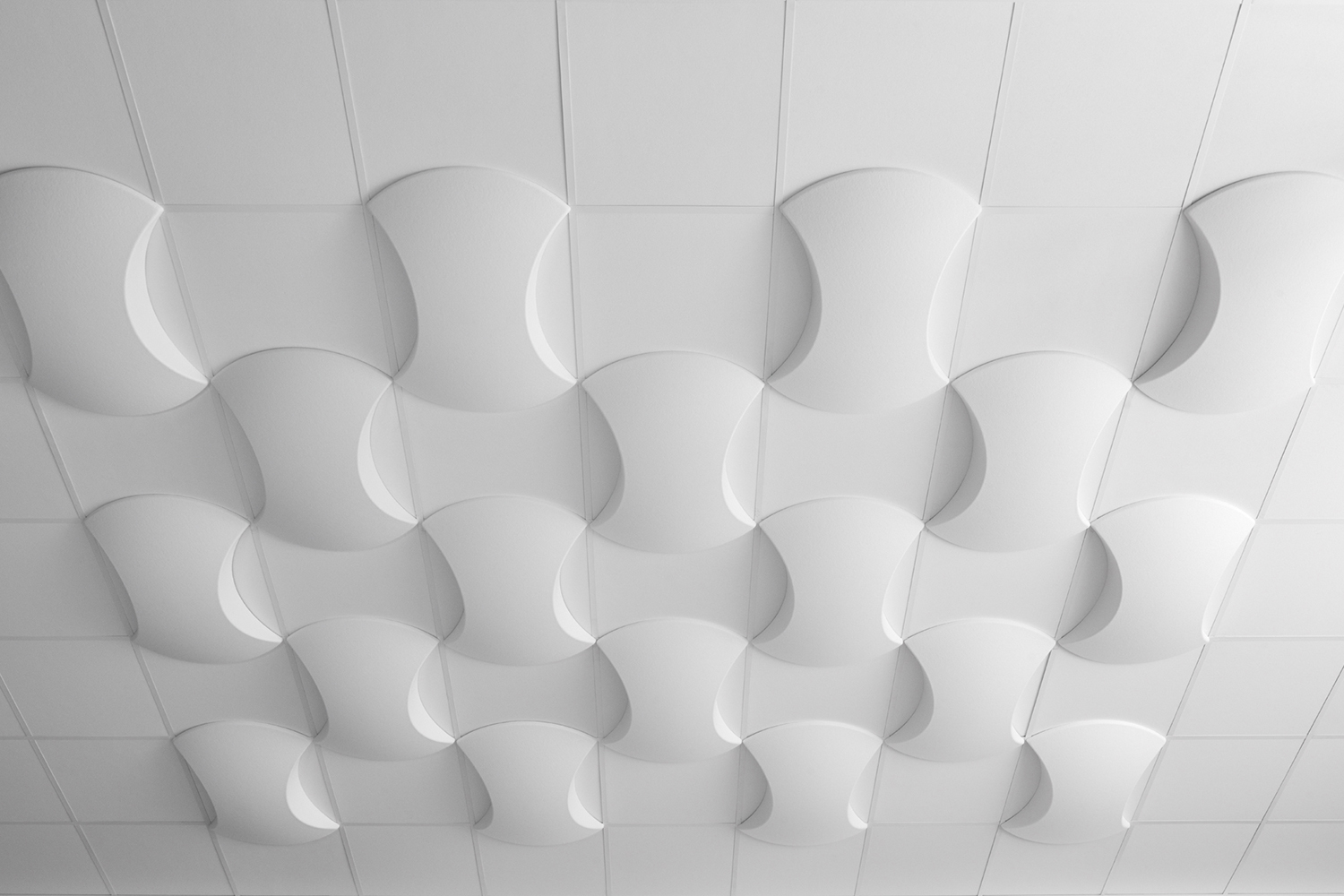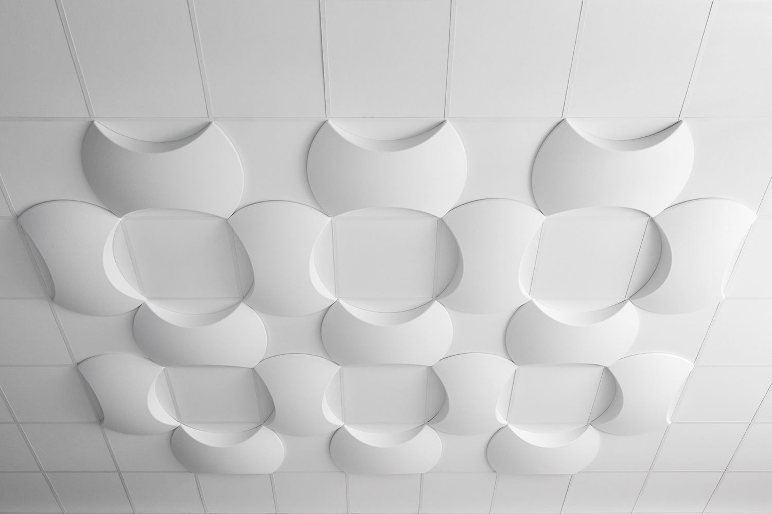 Saaie, karakterloze plafonds en wanden compromitteren de algehele indruk die wordt gemaakt door veel te veel verschillende interieuromgevingen. Sky, een modulair systeem, wil dit veranderen met een ontwerptaal die een ruimte doordrenkt met visuele energie terwijl het geluid wordt verbeterd. Het sleutelwoord is: eenvoud.