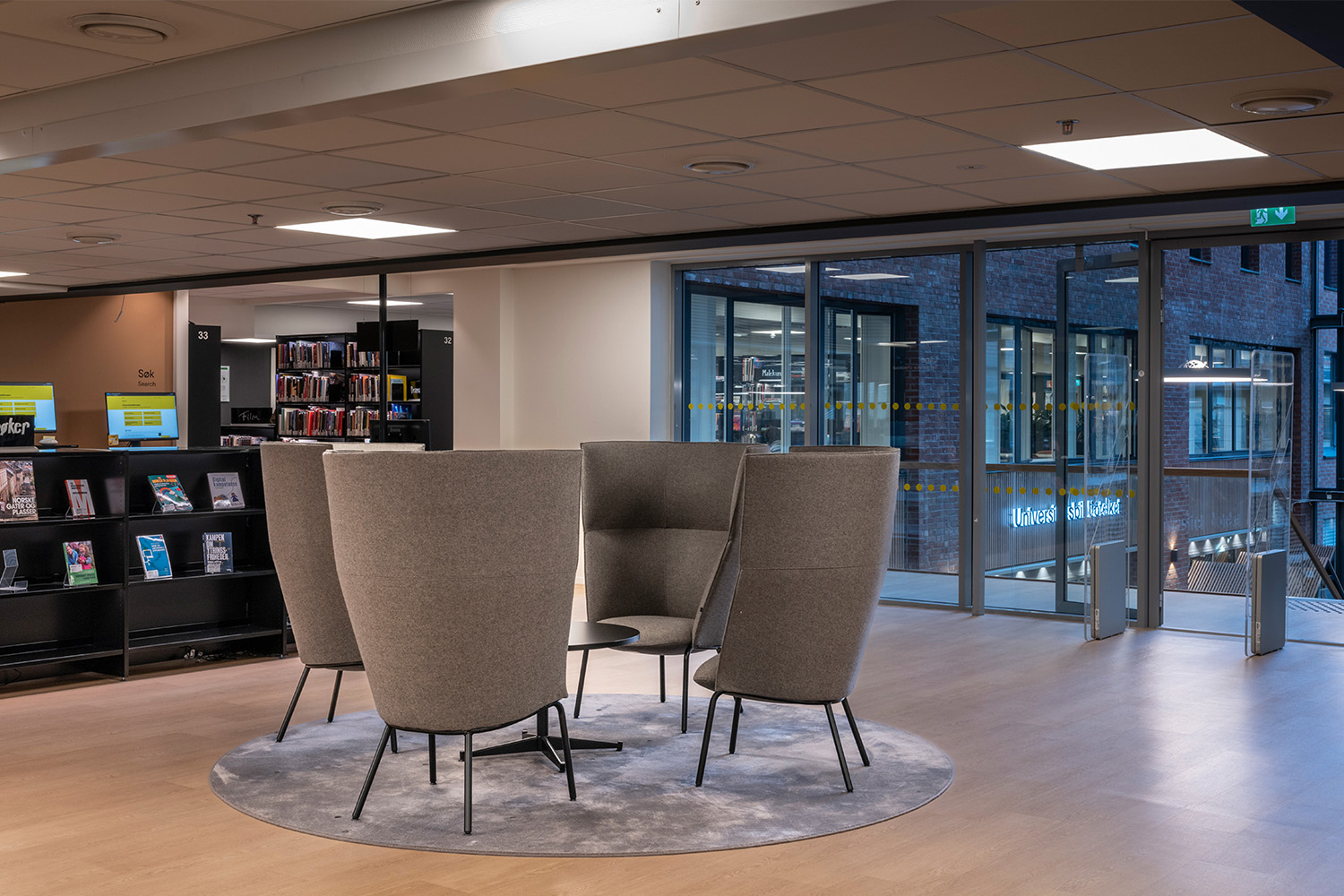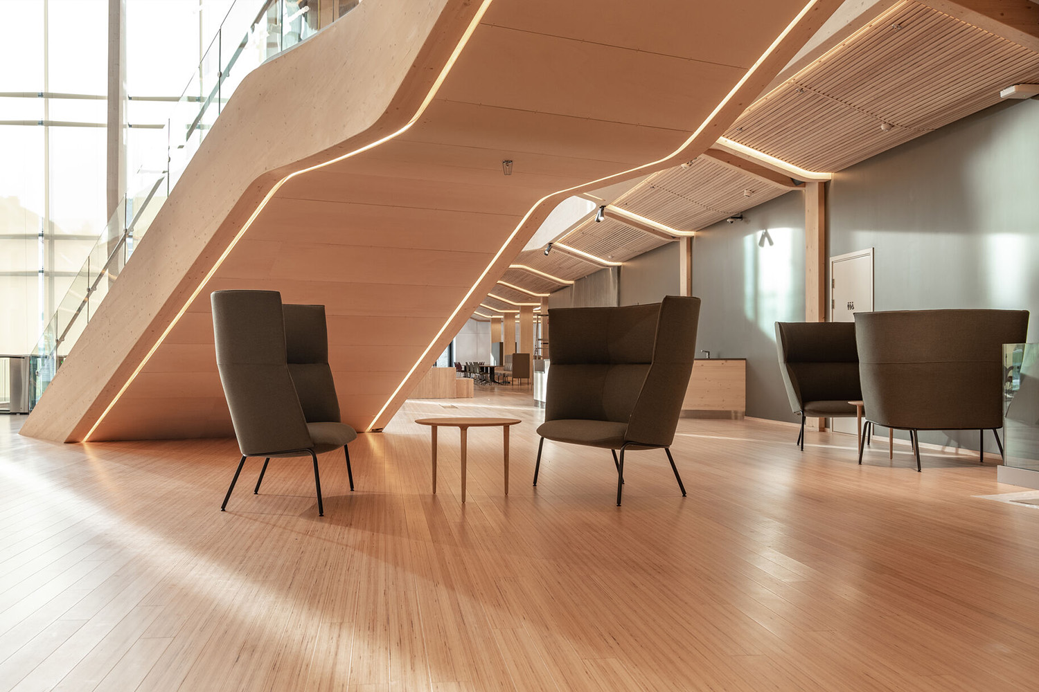 De Tind sofa’s en stoelen zijn beschikbaar met een hoge of lage rugleuning. De reeks van comfortabel en elegant bibliotheekmeubilair wordt gekenmerkt door ronde, natuurlijke vormen en herkenbare details.