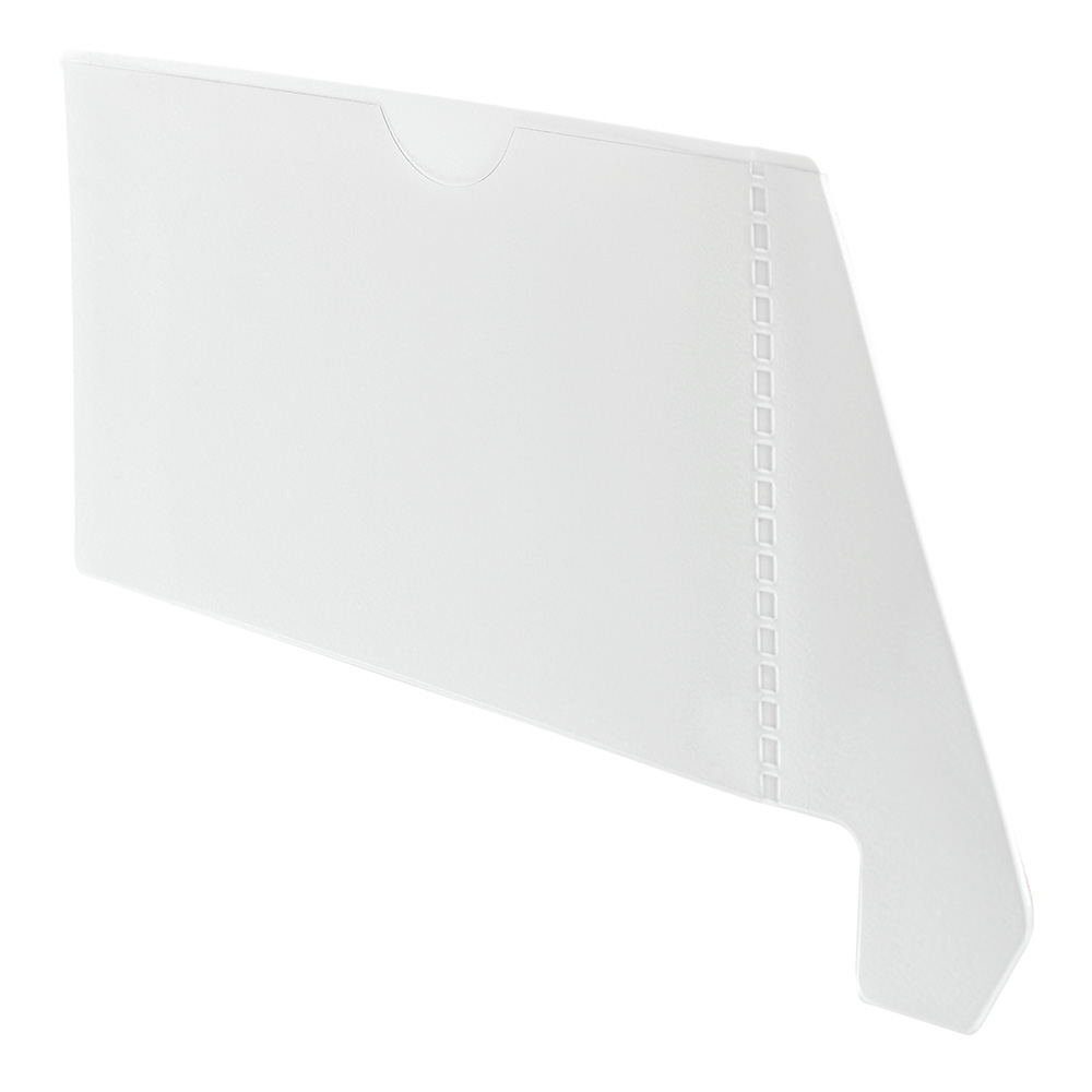 Met opgelast, transparant hoesje voor bijv. uitleenformulier.