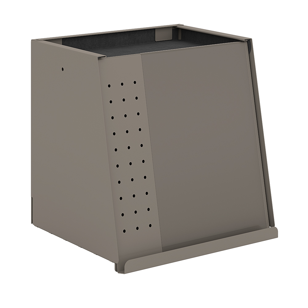 Tijdschriftenbox voor op legborden met diepte vanaf 250mm. Presenteert de cover van het tijdschrift aan de bezoekers in een makkelijk leesbare hoek.