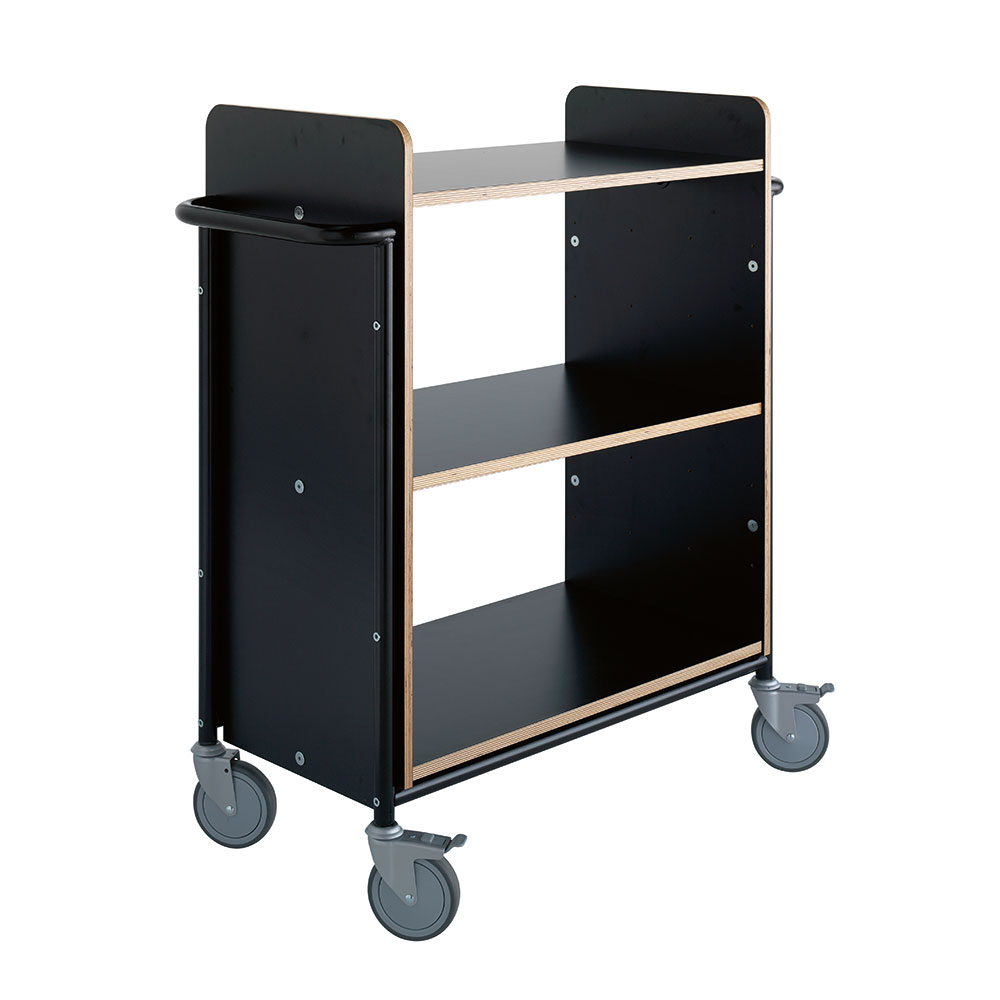 Dubbelzijdige wagen met drie, veel plaats biedende, vlakke legborden.