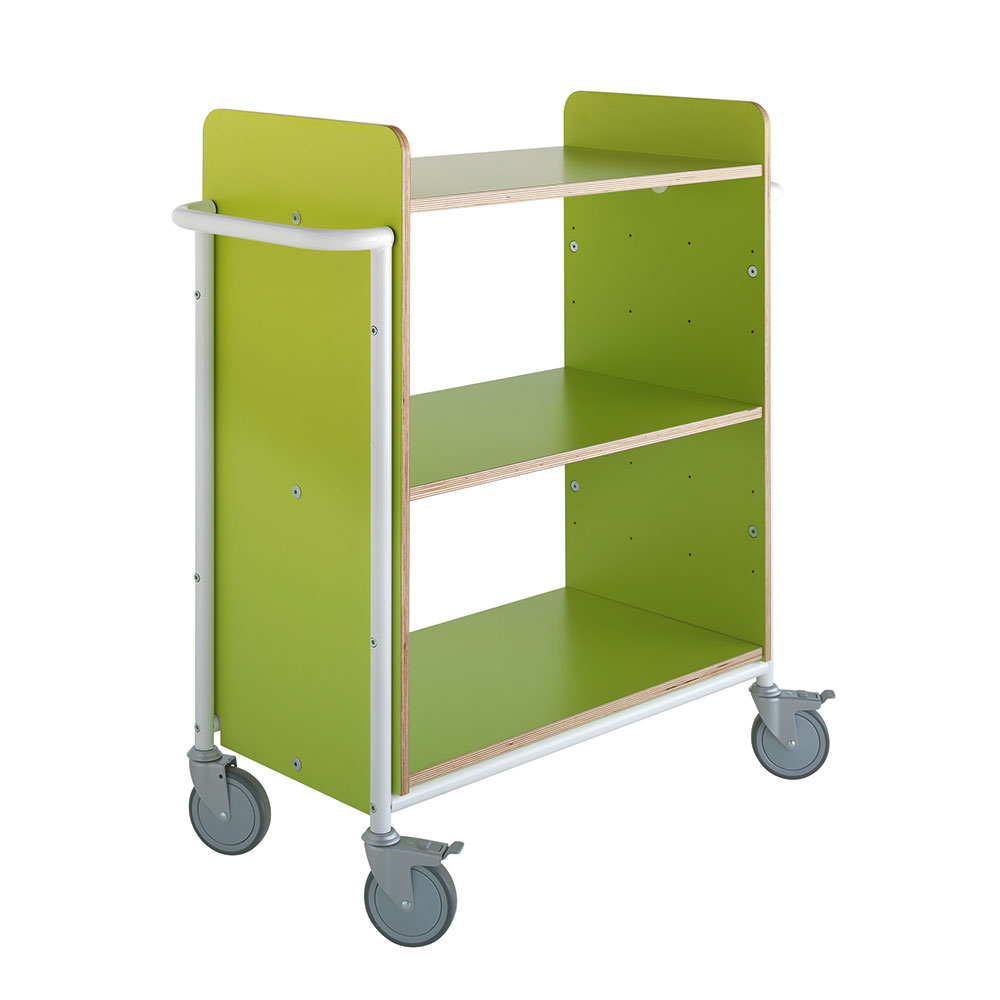 Dubbelzijdige wagen met drie, veel plaats biedende, vlakke legborden.