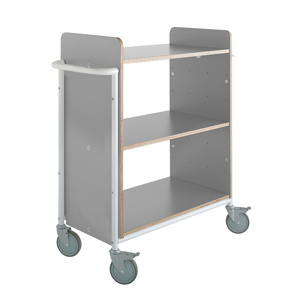 Dubbelzijdige wagen met drie, veel plaats biedende, vlakke legborden.