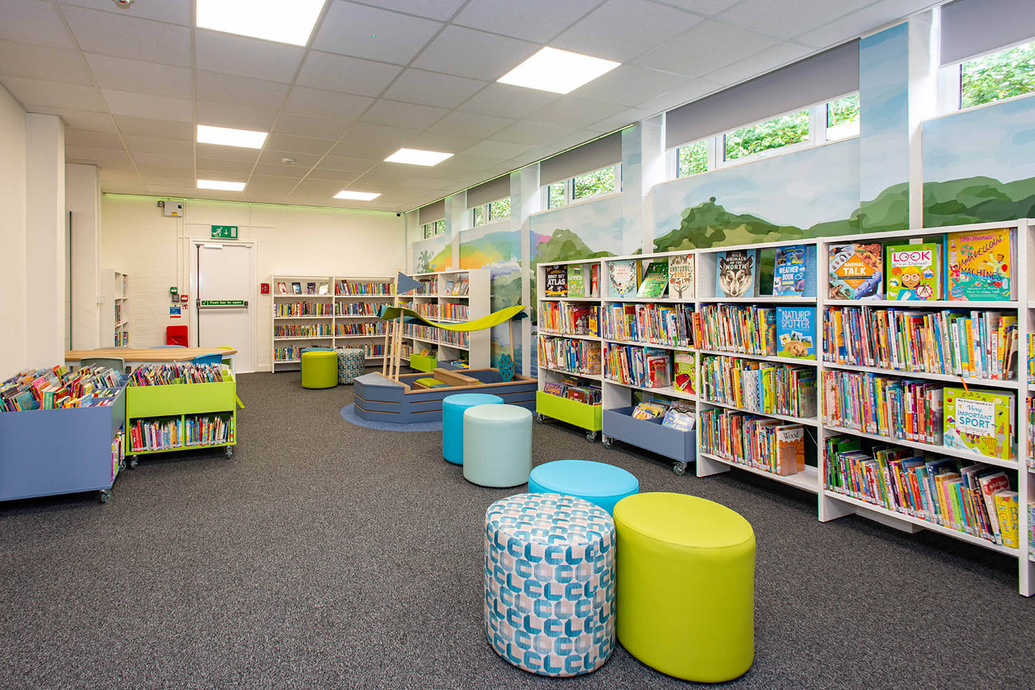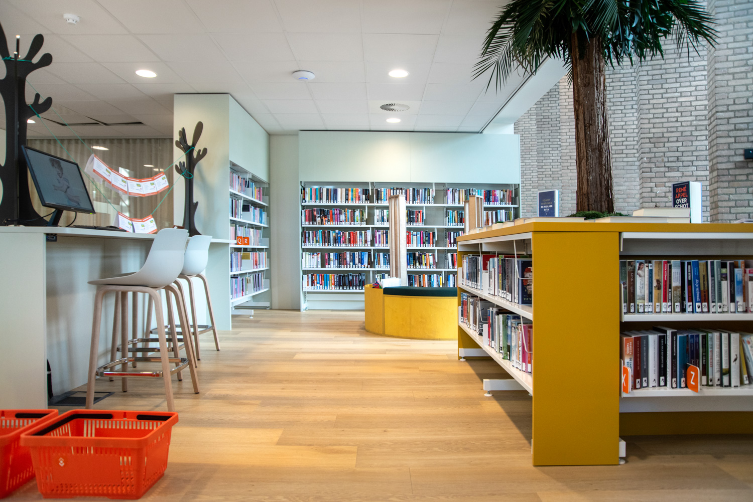 We gebruiken gelamineerd berkenmultiplex - hier met zichtbare randen - om zowel een duurzaam oppervlak als een duurzame constructie te creëren. Perfect voor de meest veeleisende bibliotheekomgevingen!