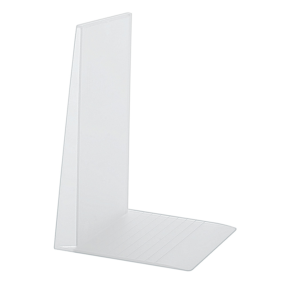 Lichte handzame boekensteun van kunststof. Voorzien van antisliplaag.