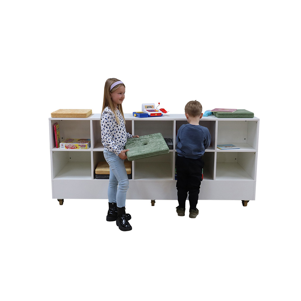 Vanwege haar minimalistische design kunnen meerdere eenheden dicht bij elkaar of tegen een muur staan. Aan de achterzijde is voldoende ruimte voorzien voor het opbergen van voorwerpen zoals zitkussens, bordspelletjes, boeken en speelgoed, die de nodige speelwaarde creëren. Het bovenste gedeelte kan gemakkelijk omgedraaid worden, waardoor de opbergvakken naar voren komen te staan.