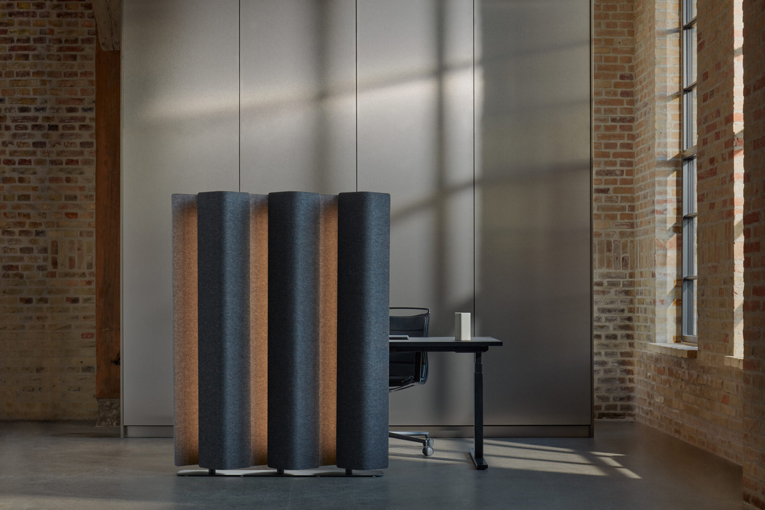 Vika van Abstracta is een sculpturaal vloerscherm dat de perfecte combinatie van geluidsabsorberende technologie en elegante verlichting biedt voor uw bibliotheek. Ontworpen om zowel privé als functionele ruimtes te creëren, optimaliseert Vika de akoestiek en verlichting in leeszones of individuele studiehoeken.