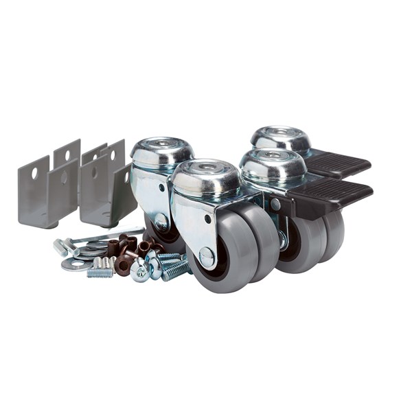 Set van 4 wielen. 2 van de wielen zijn vergrendelbaar.