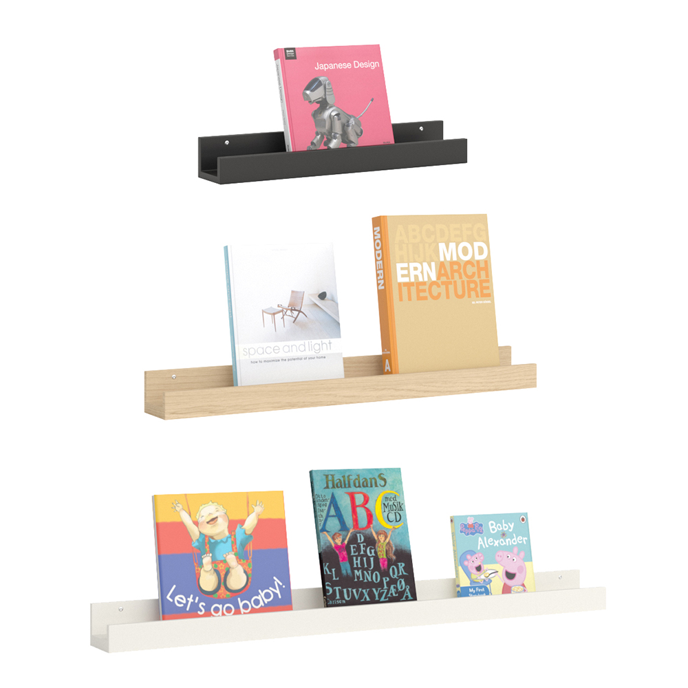 Veelzijdige plank voor wandmontage met opstaande rand vooraan.