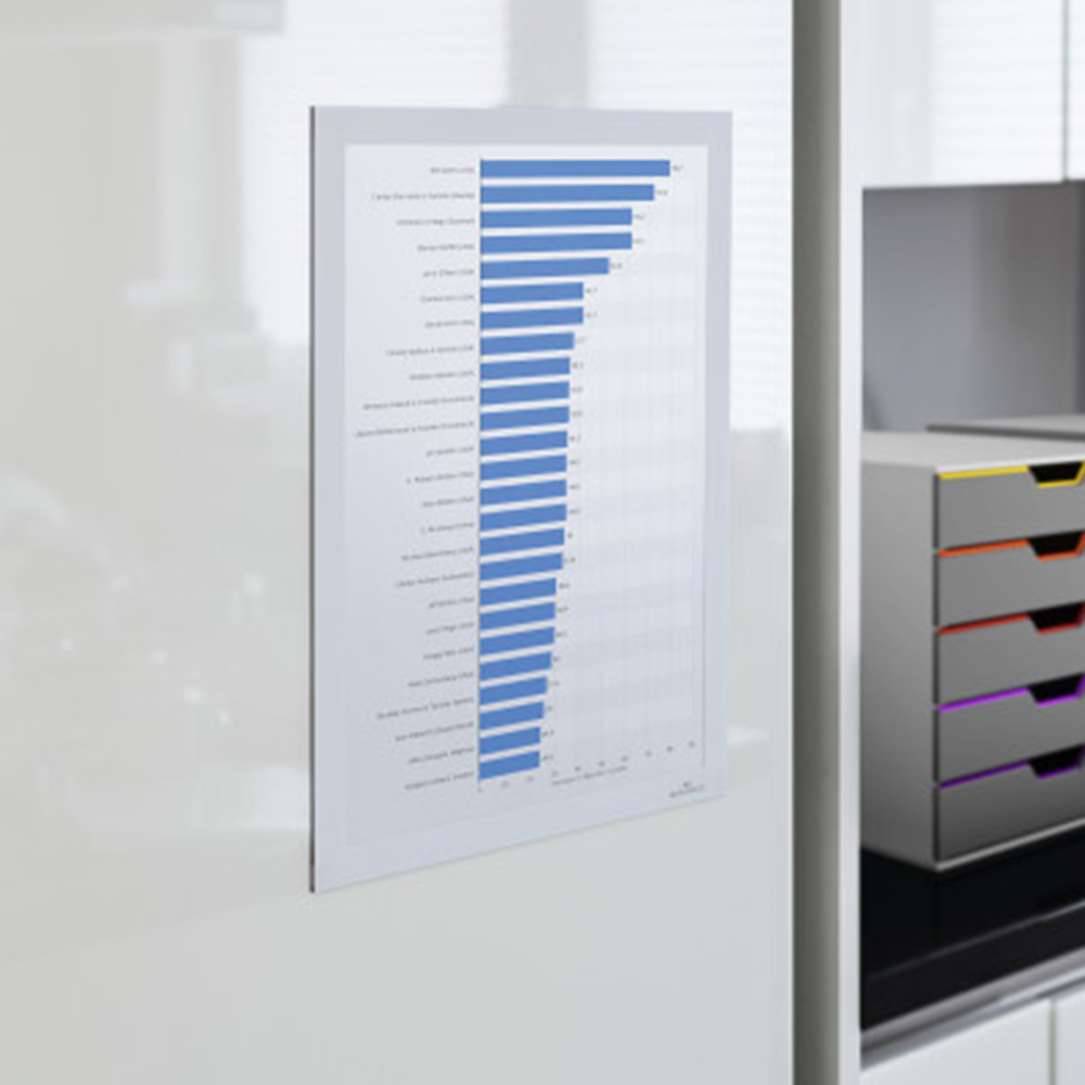 Deze zelfklevende documenthouders (Duraframe®) zijn ideaal voor montage op gladde oppervlakken zoals ramen, deuren, zijwanden van een boekenrek, ...