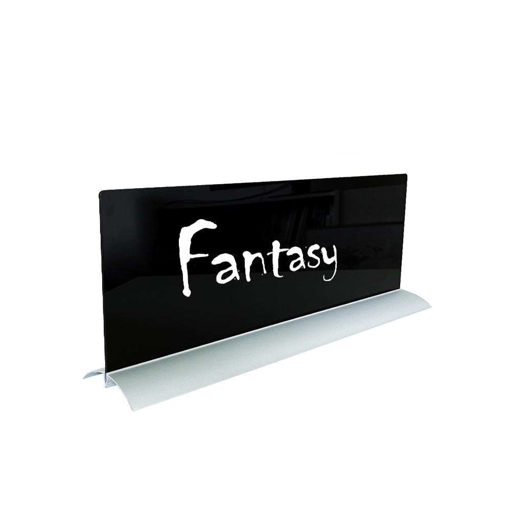 Exclusieve dubbelzijdig beschrijfbare standaard voor plaatsing op een tafel, balie, kasten, vitrines etc.